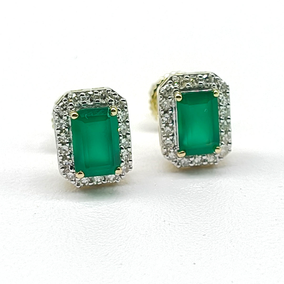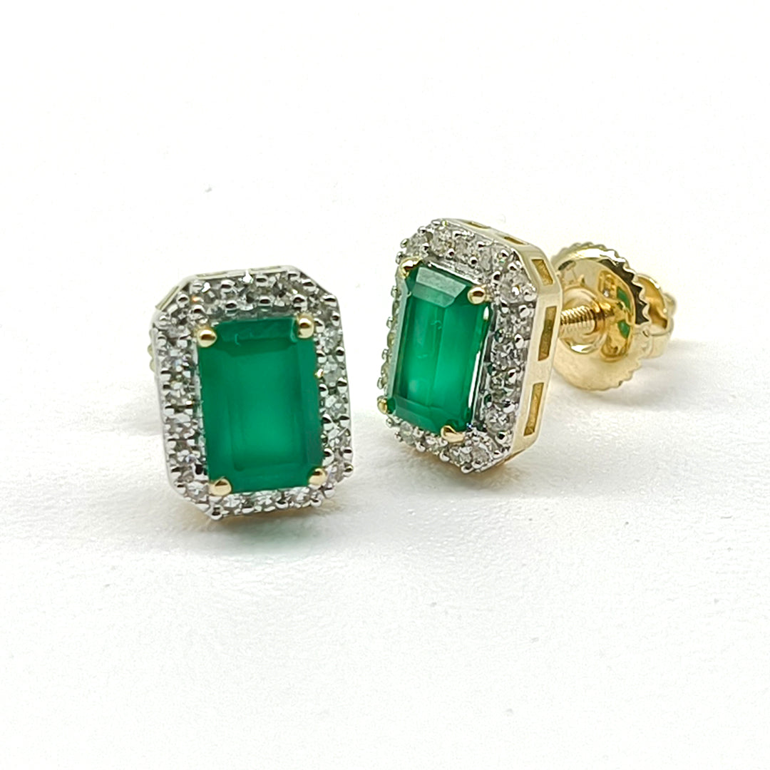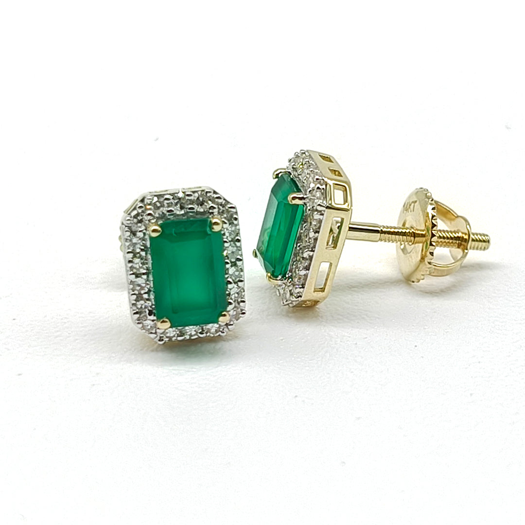Aretes de esmeraldas y diamantes en oro amarillo de 14 Kilates.