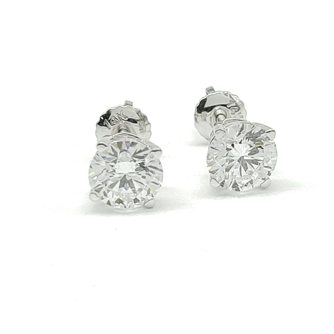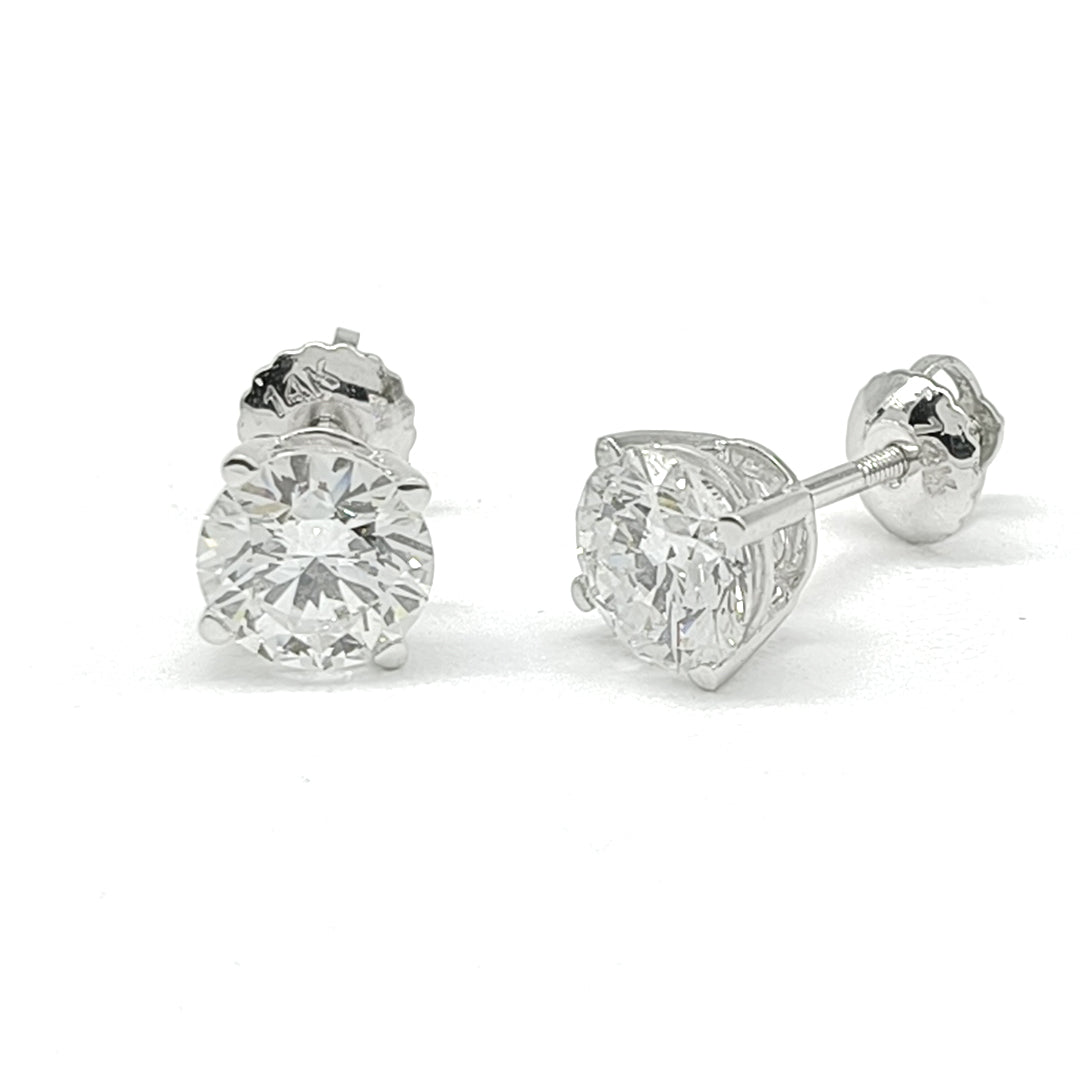 Aretes en oro blanco de 14 Kilates con Diamantes de Laboratorio.