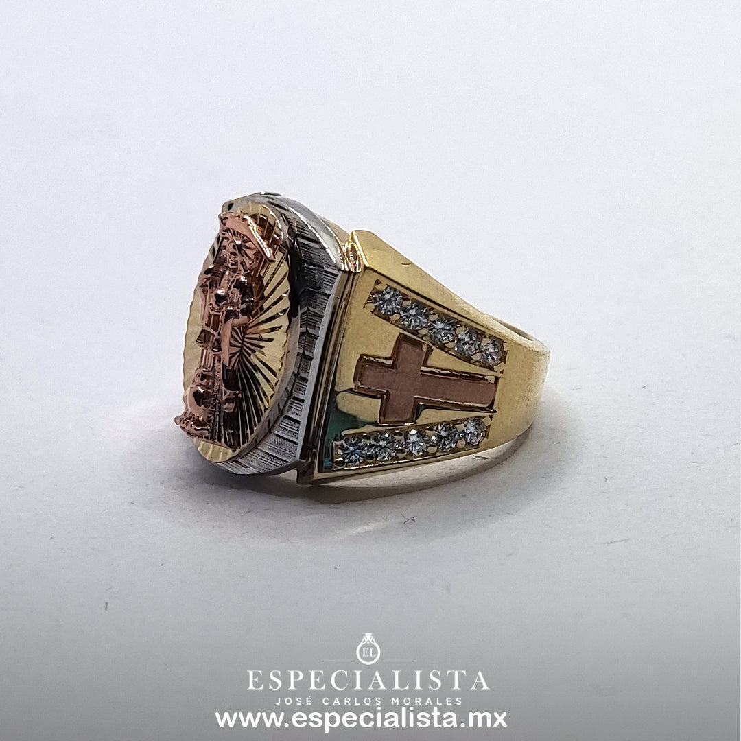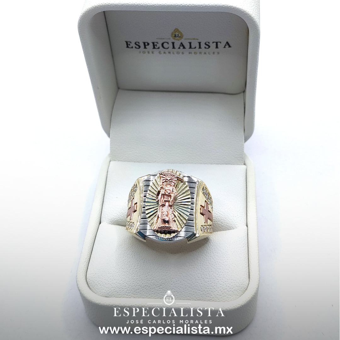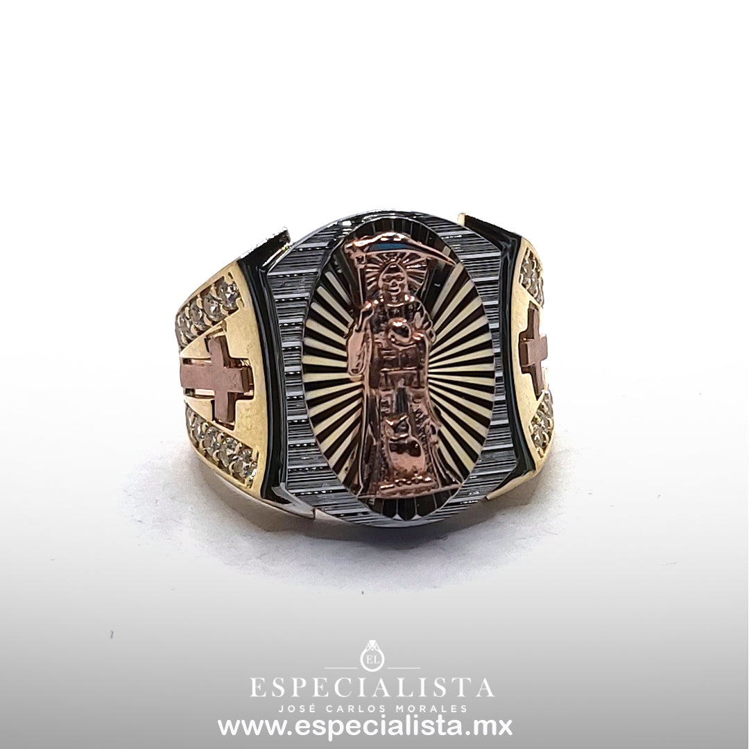 Anillo para Caballero con imagen de la Santa Muerte en oro florentino de 10 Kilates.