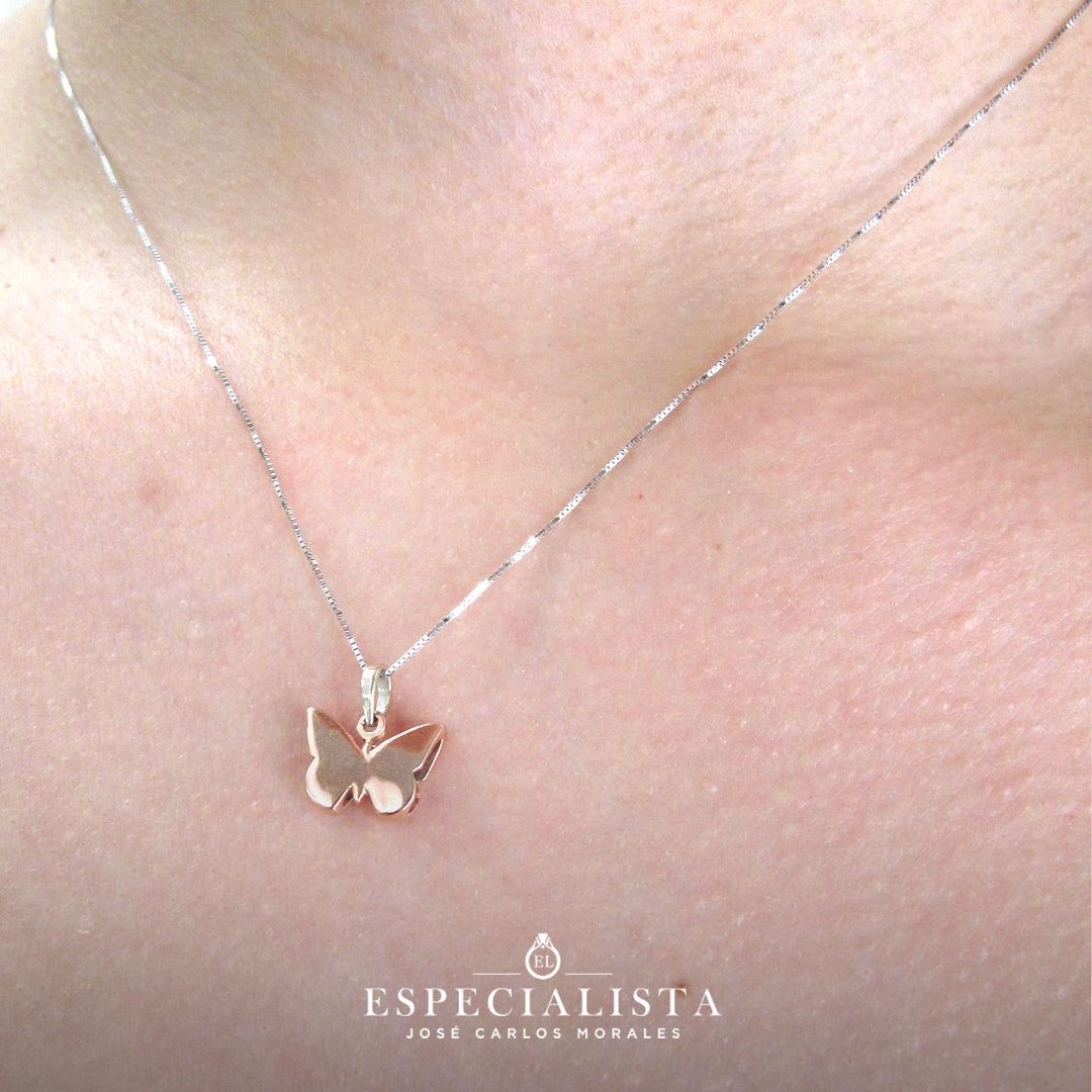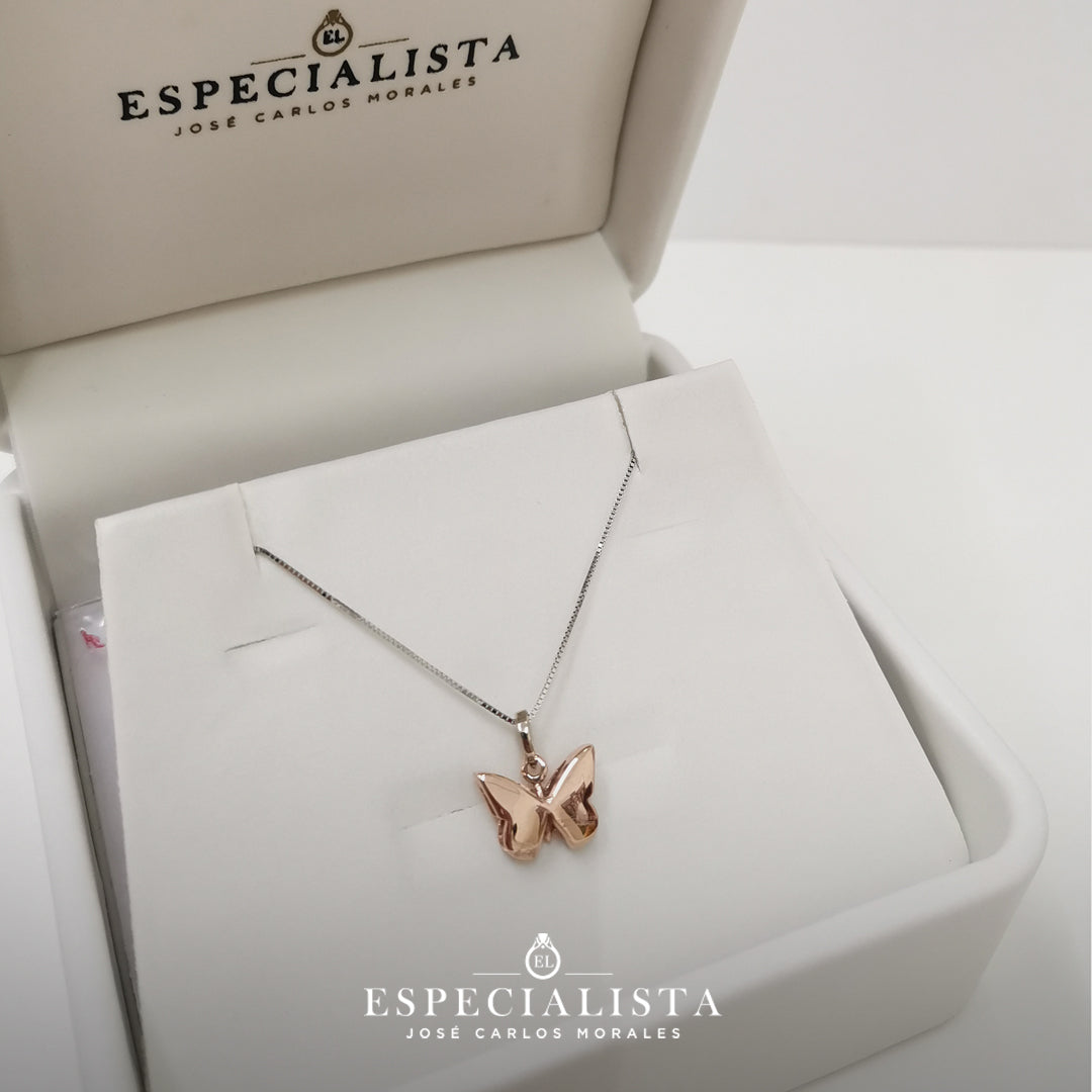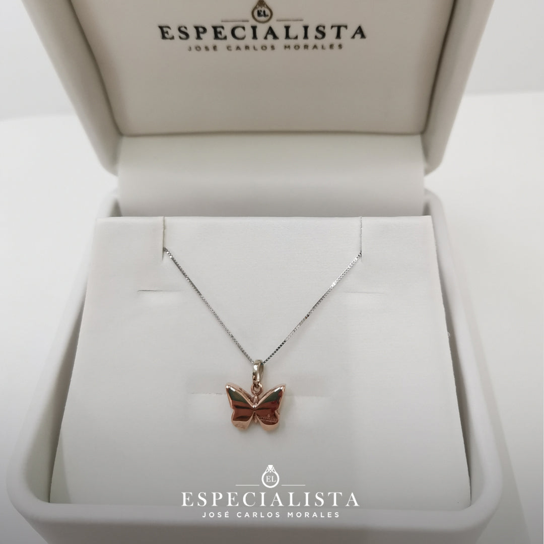 Cadena en oro amarillo/blanco/rosa con dije en de Mariposa 3D.
