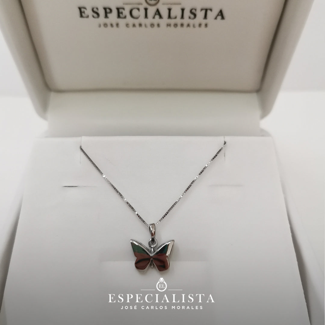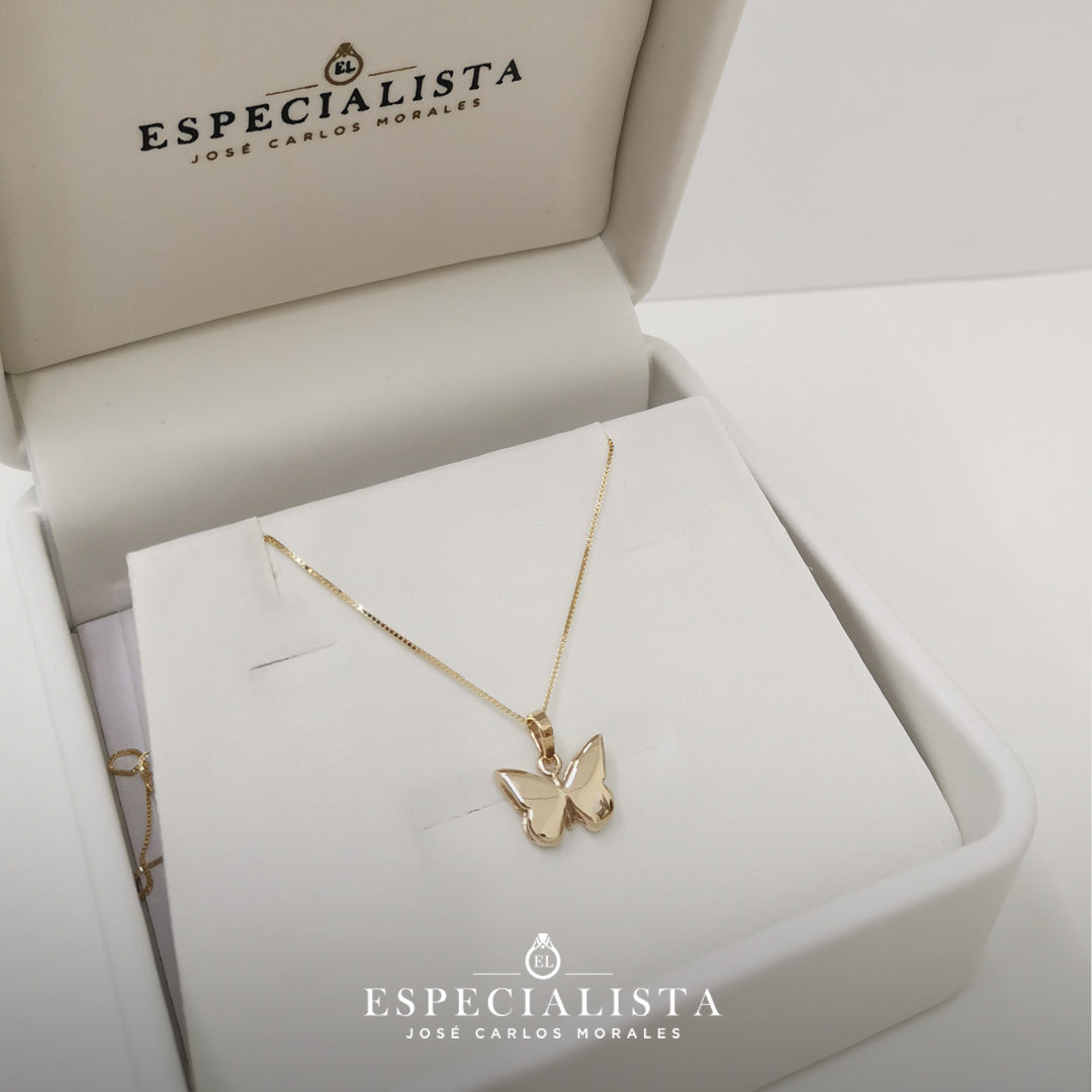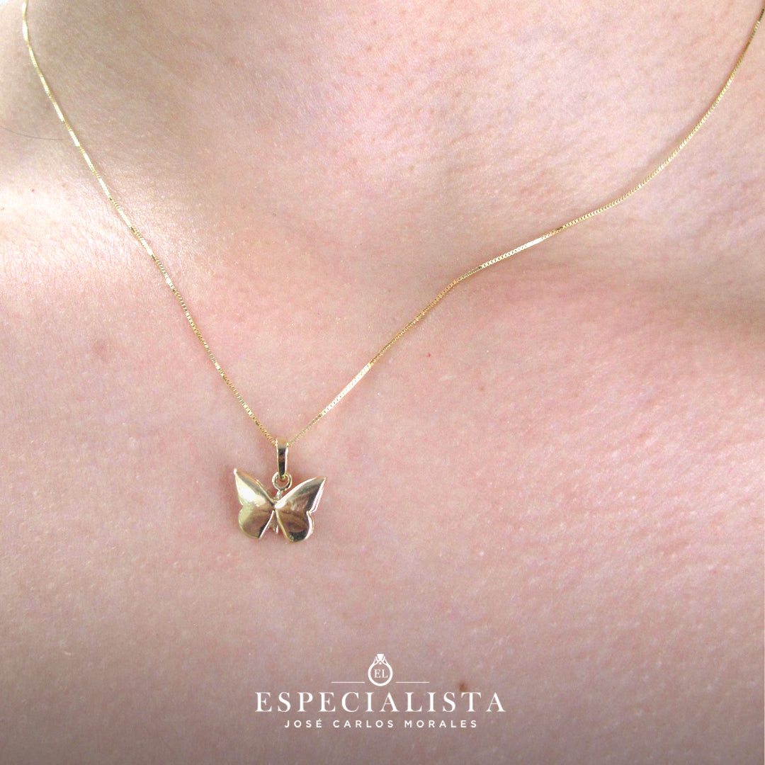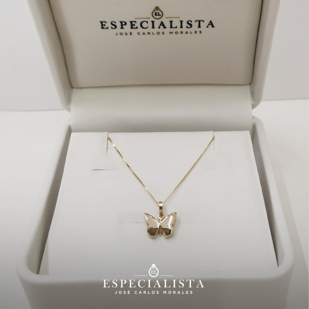 Cadena en oro amarillo/blanco/rosa con dije en de Mariposa 3D.