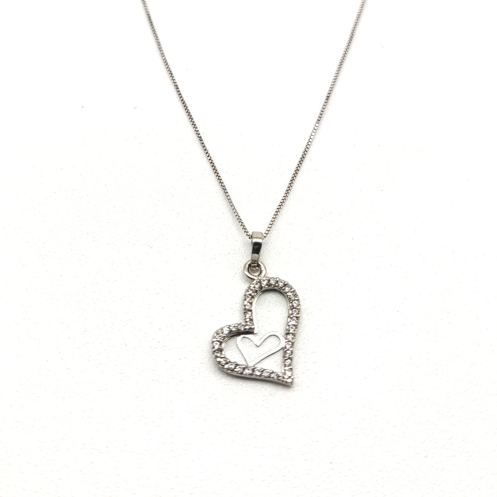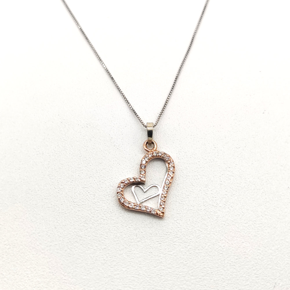 Cadena en oro blanco con dije de corazón en amarillo/blanco/rosa.