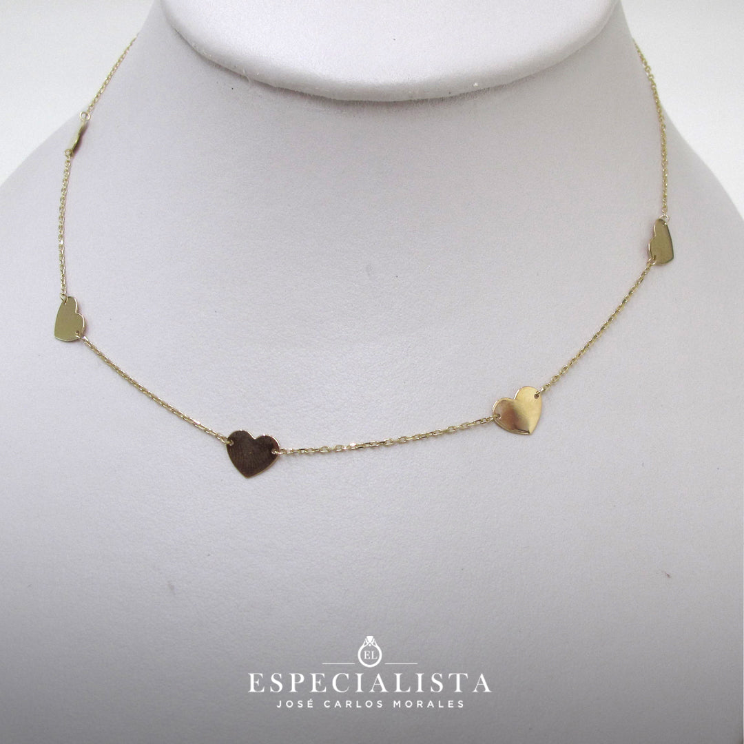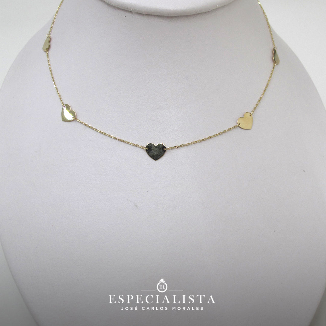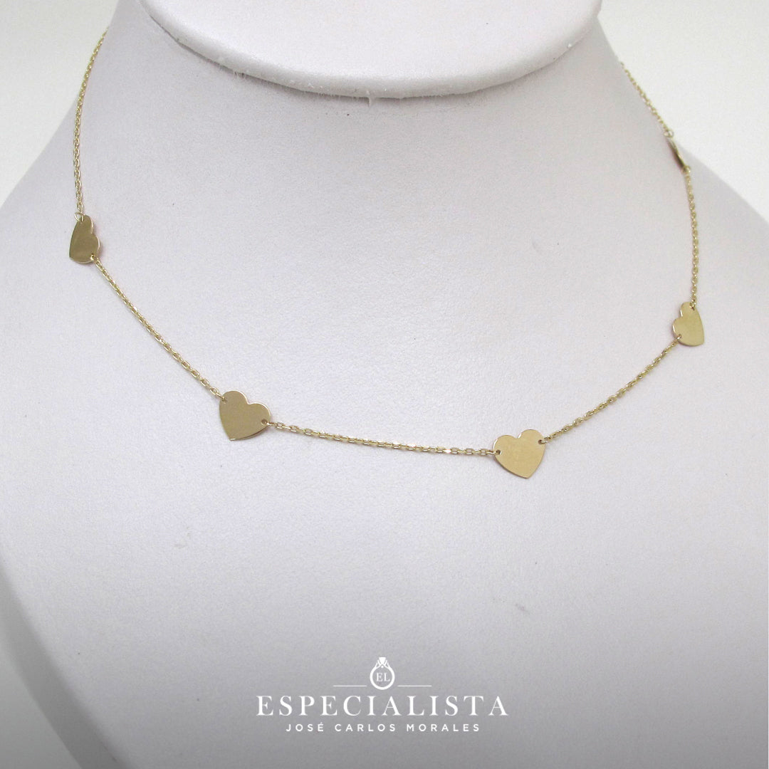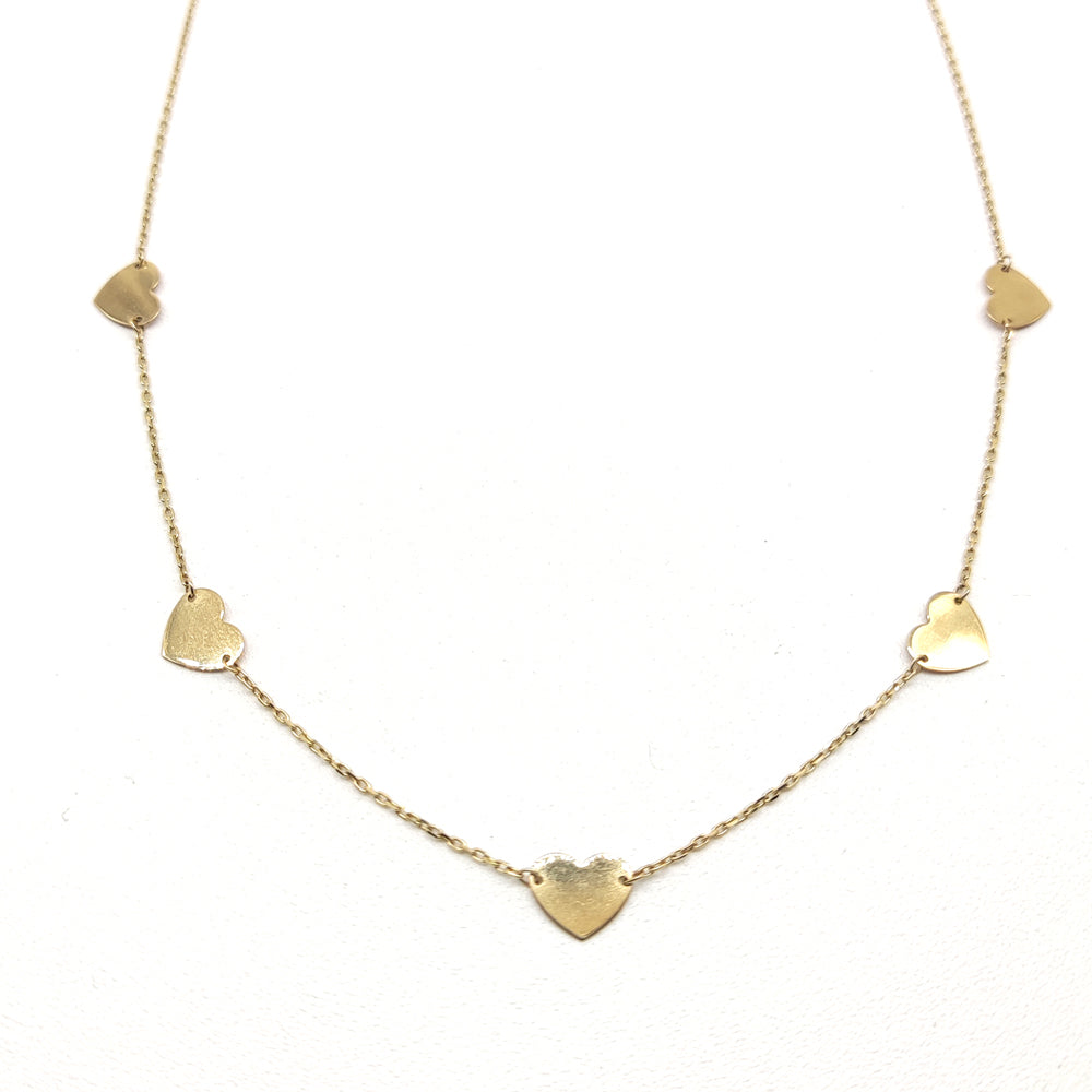 Cadena en oro amarillo de 14 Kilates, con cinco corazones.