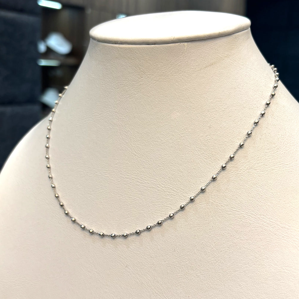 Cadena de bolitas en oro blanco de 14 Kilates.