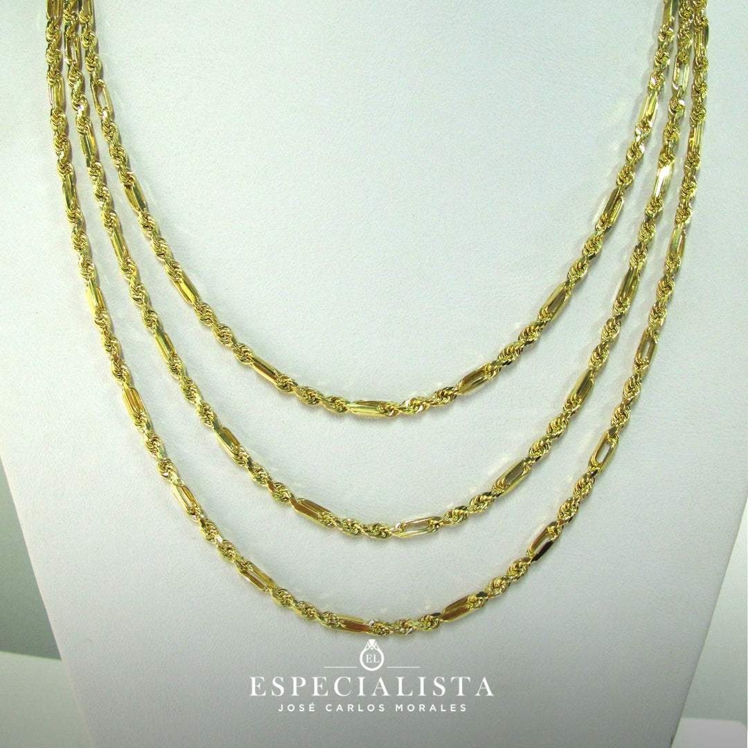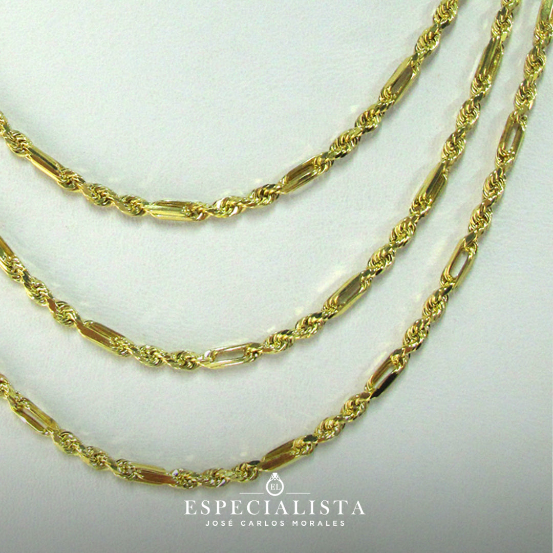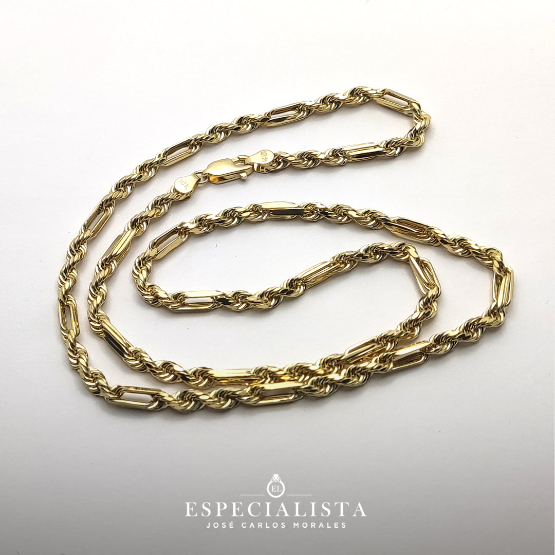 Elegante cadena tipo torsal fígaro en oro amarillo de 10 Kilates.