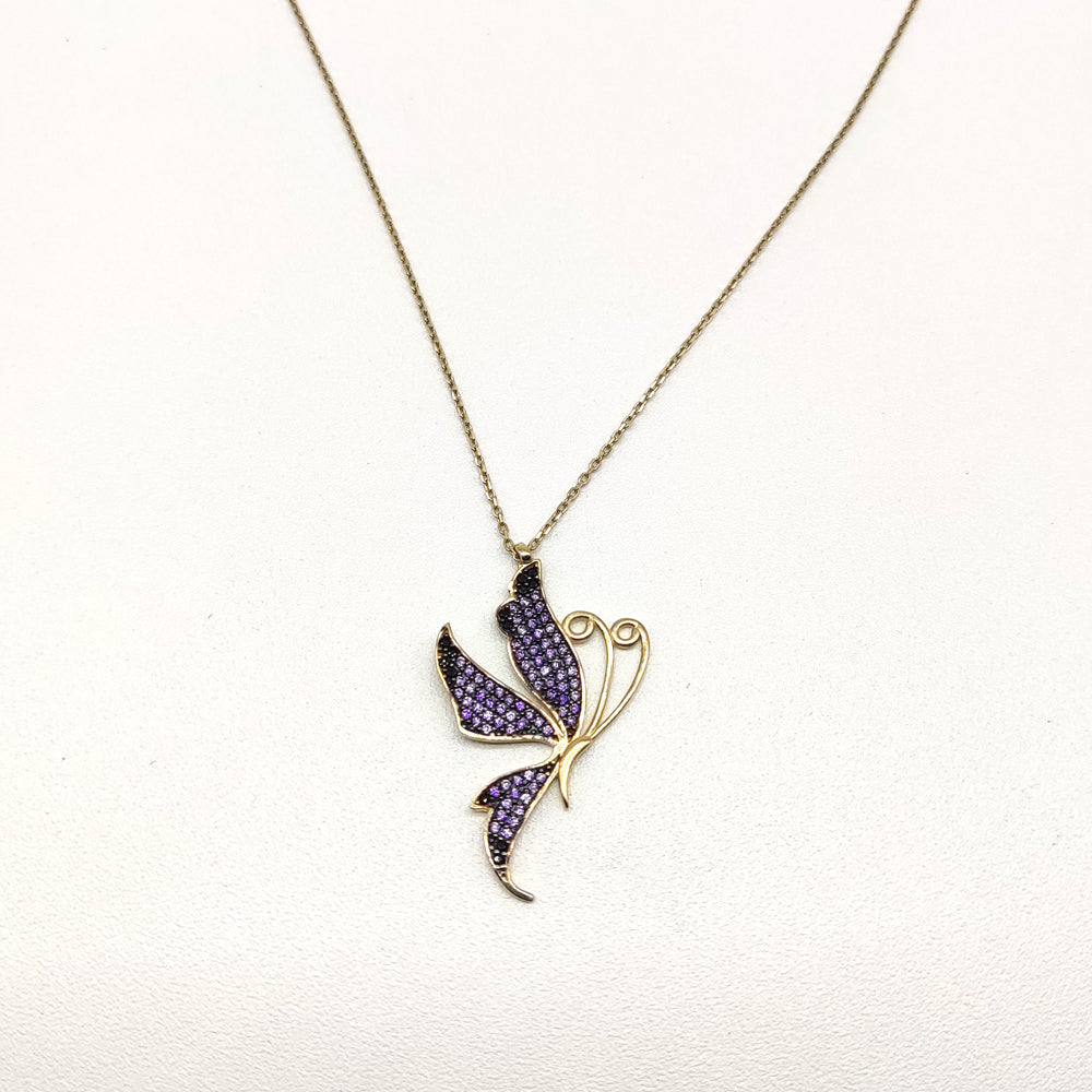 Cadena en oro amarillo de 10 Kilates con un hermoso dije en forma mariposa morada
