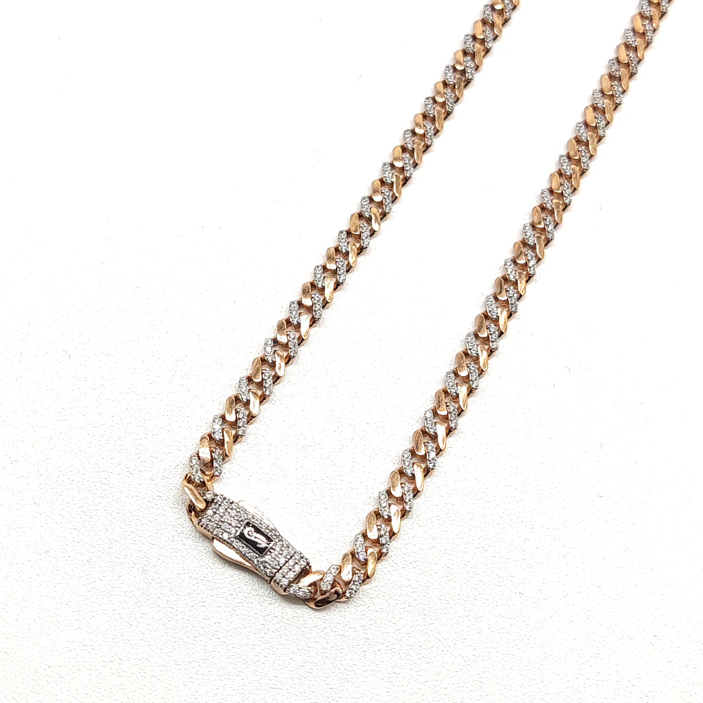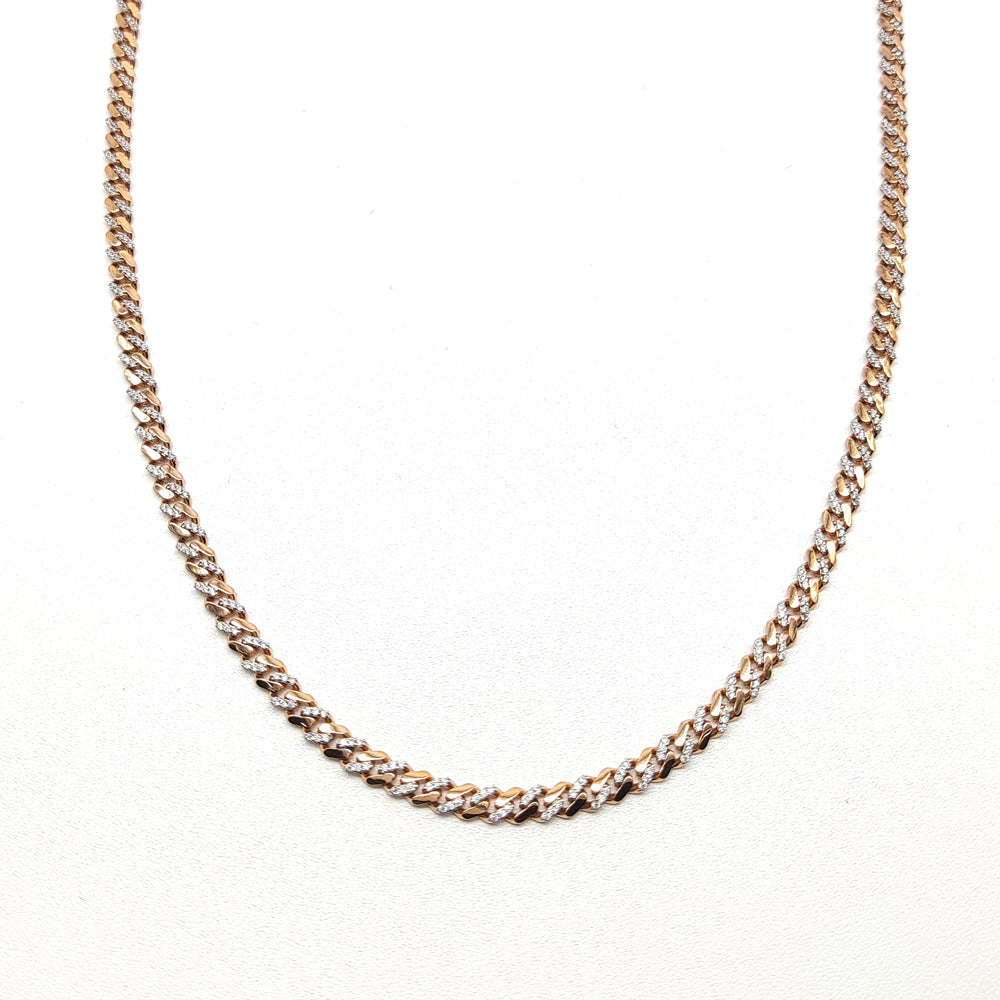 Cadena Mónaco tipo barbada en oro rosa de 10 kilates.