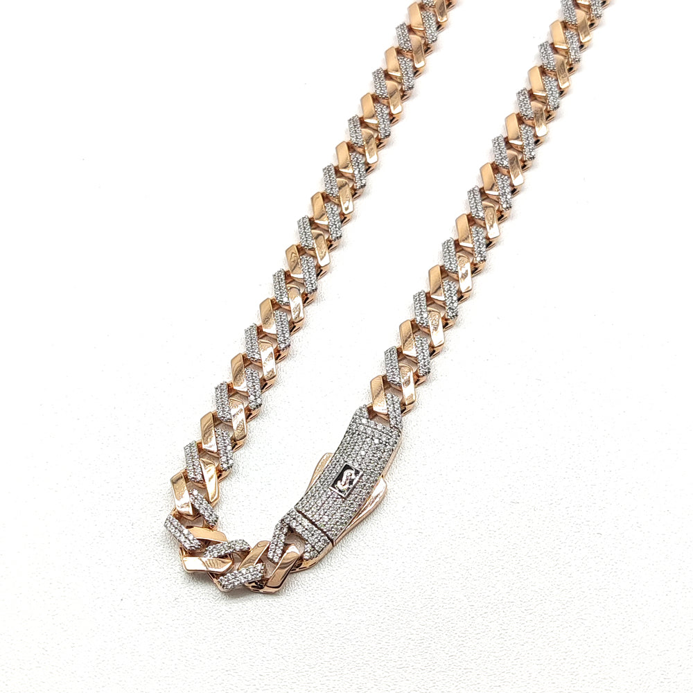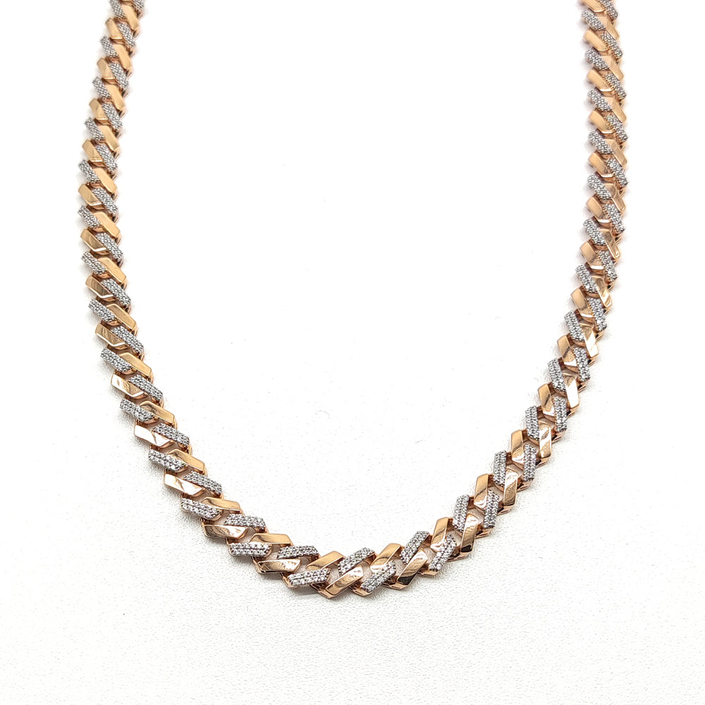 Cadena Mónaco tipo barbada en oro rosa de 10 kilates.