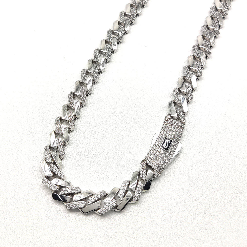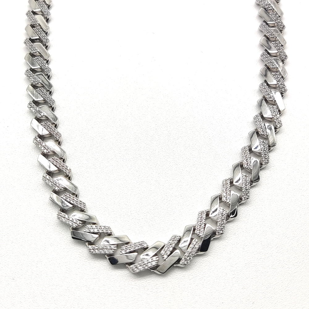 Cadena Mónaco tipo Edge en oro blanco de 10 kilates.
