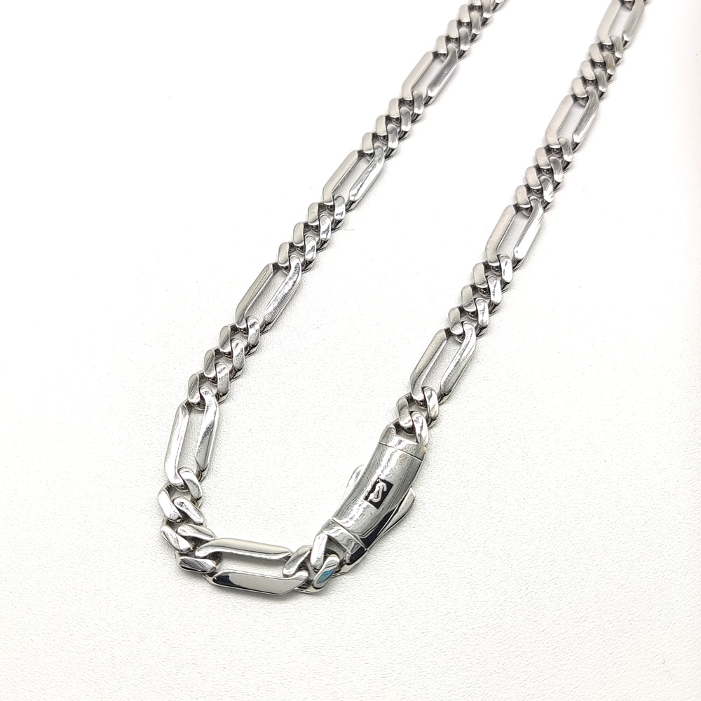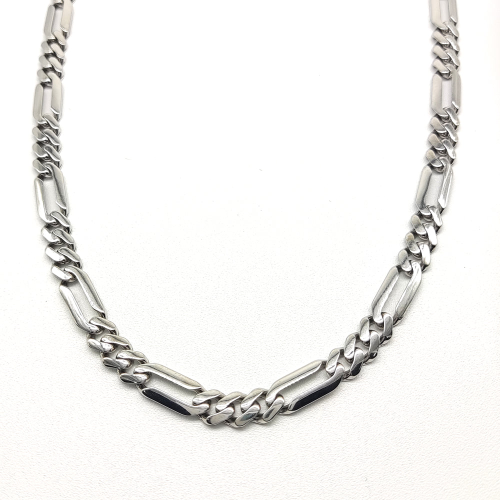 Cadena Mónaco tipo Fígaro en oro blanco de 10 kilates.