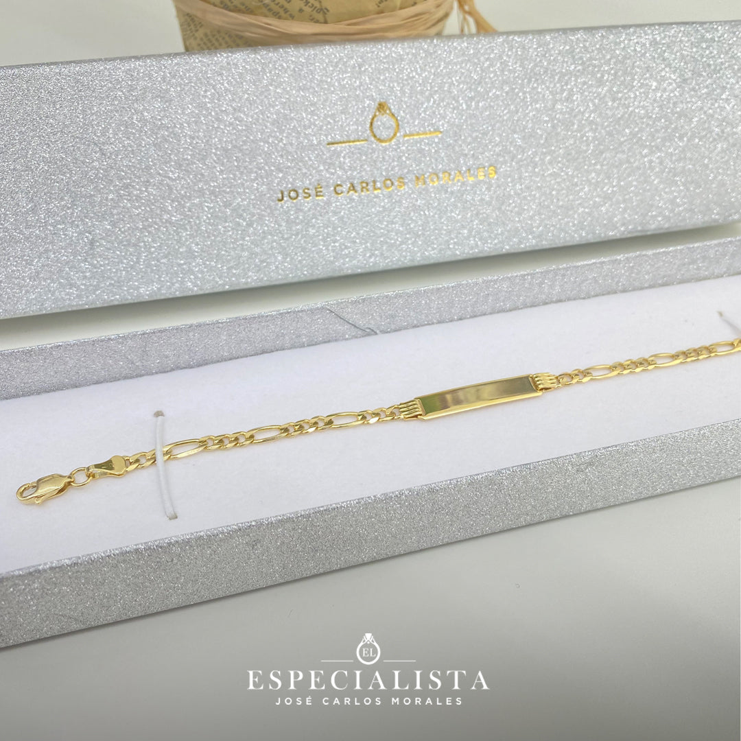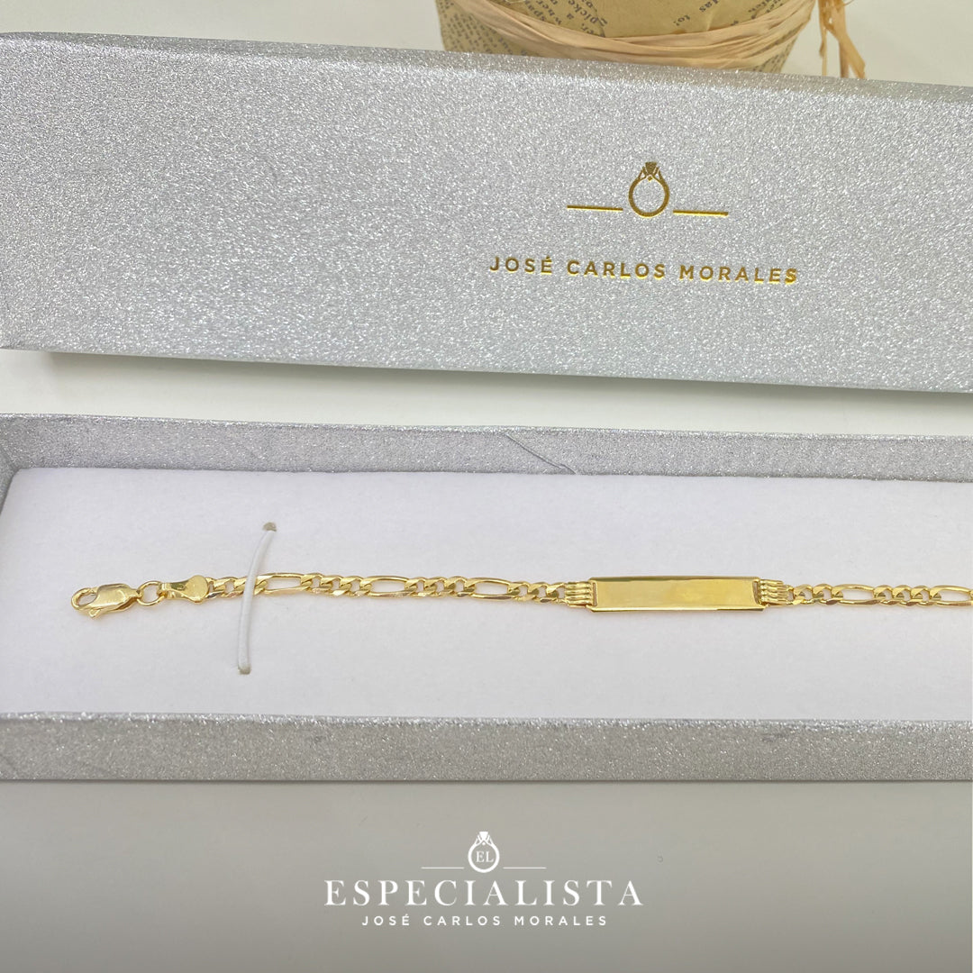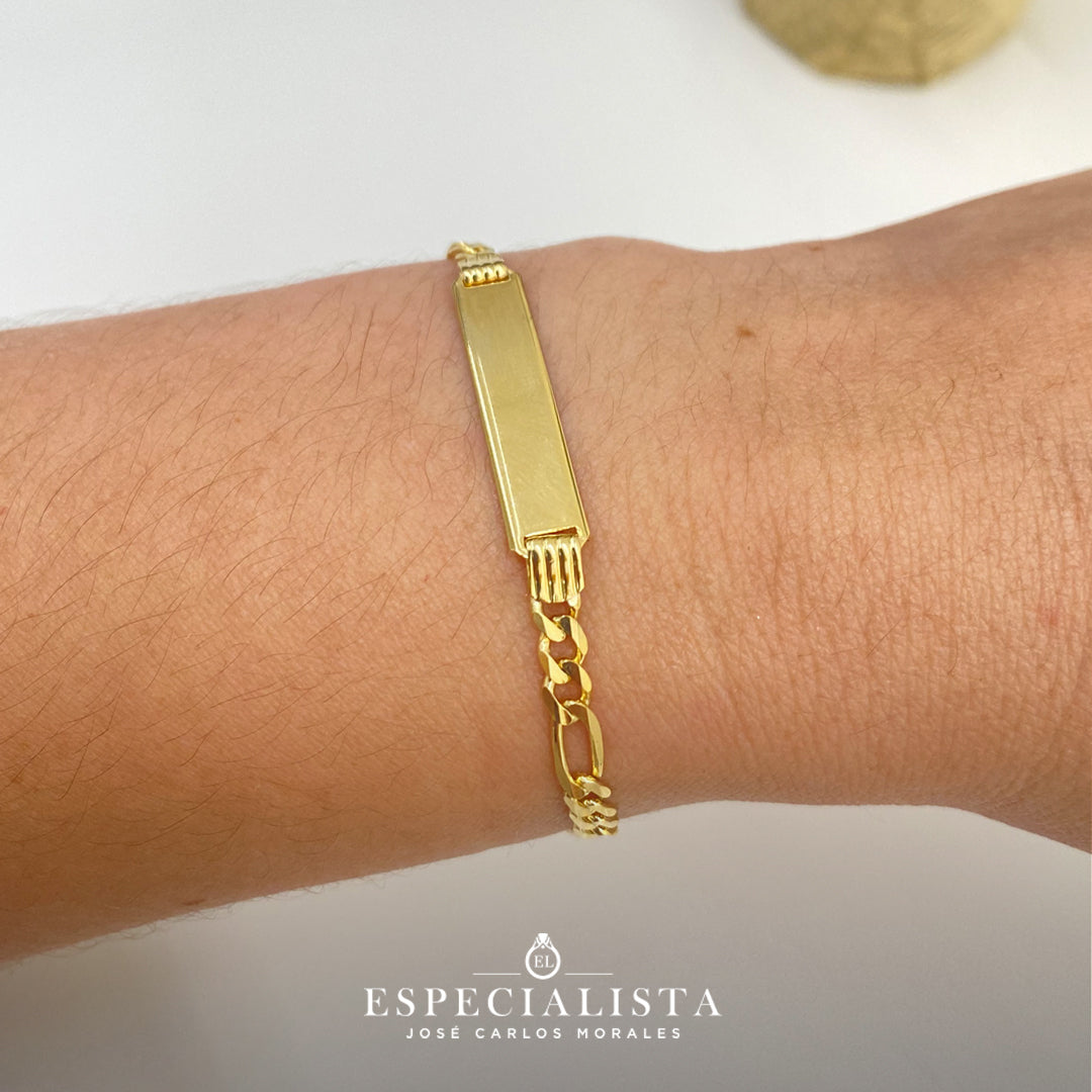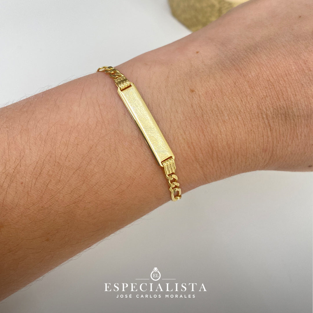 Pulsera eslabones con placa en oro de 10 Kilates.