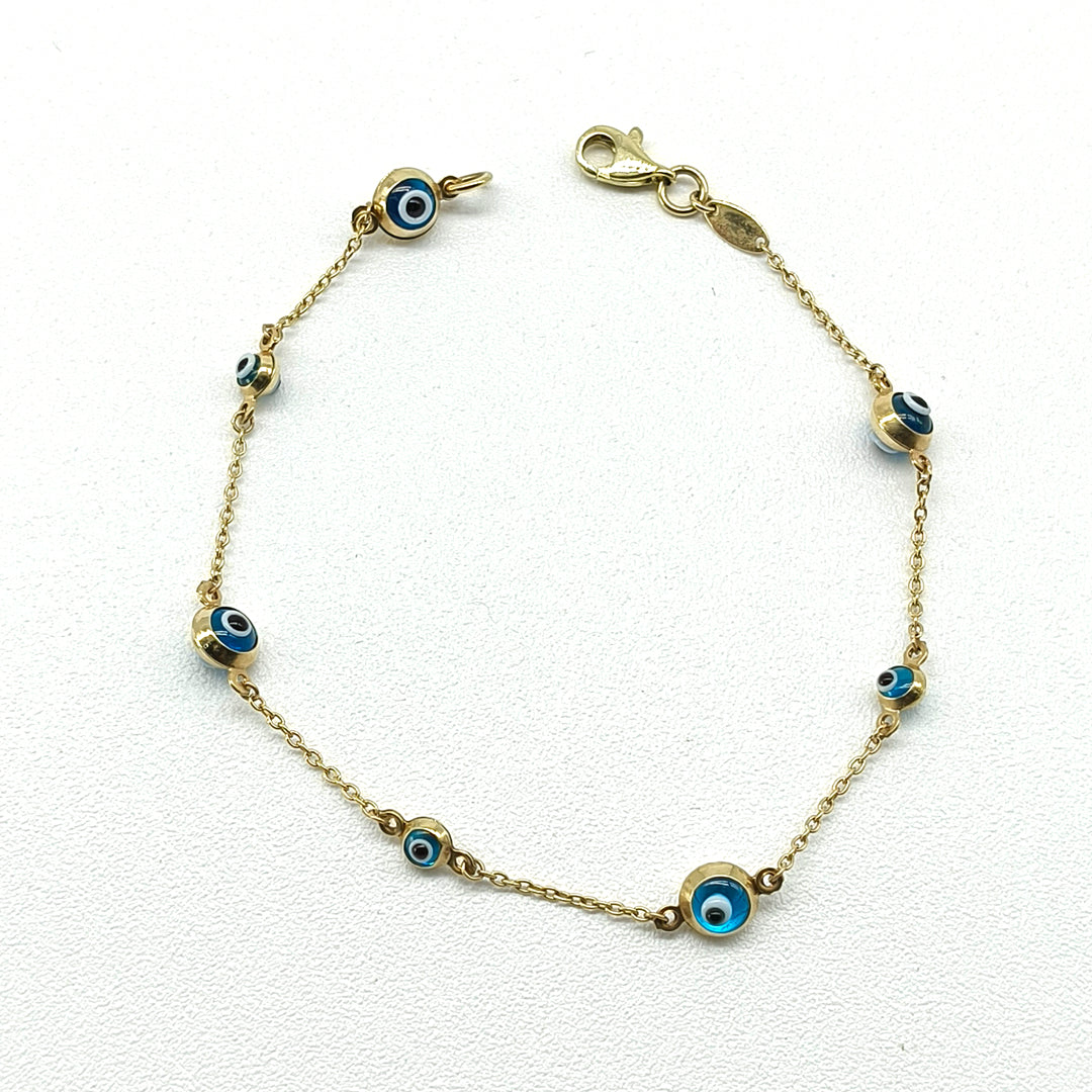 Pulso en oro amarillo de 10 Kilates con ojitos azules.