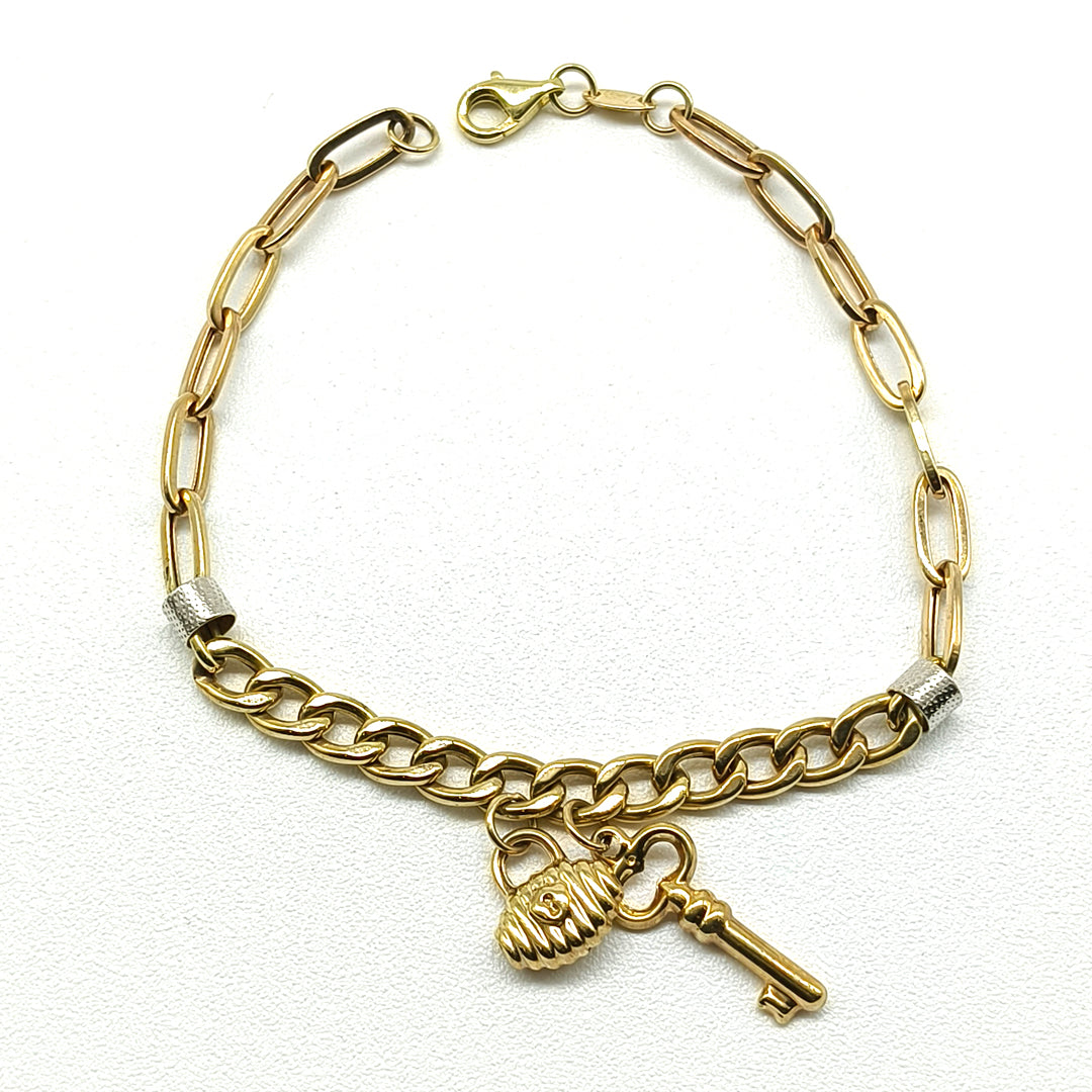 Pulso en oro amarillo amarillo de 10 Kilates con dijes colgantes.