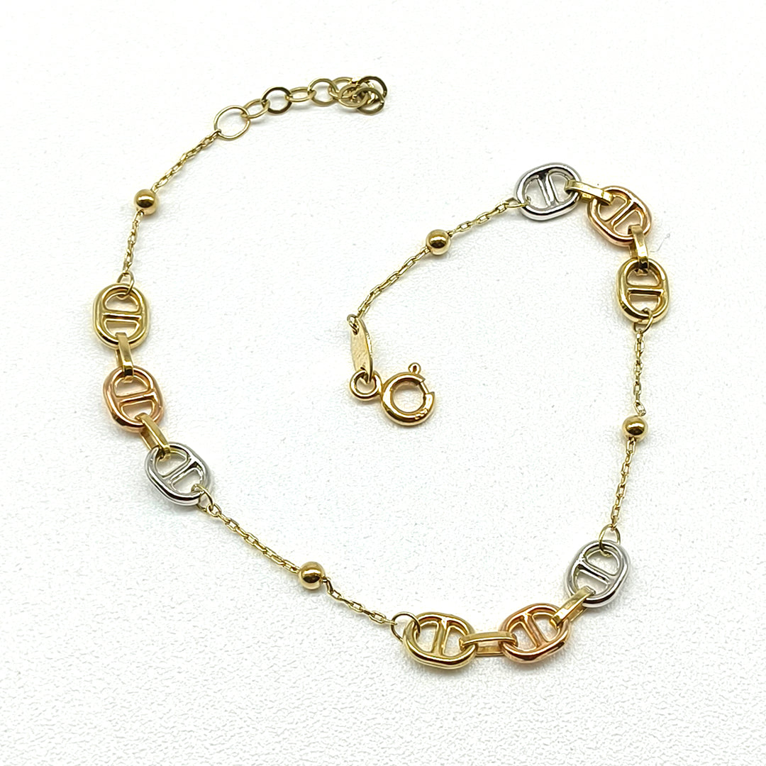 Pulso en oro amarillo con dijes en oro florentino de 10 Kilates.