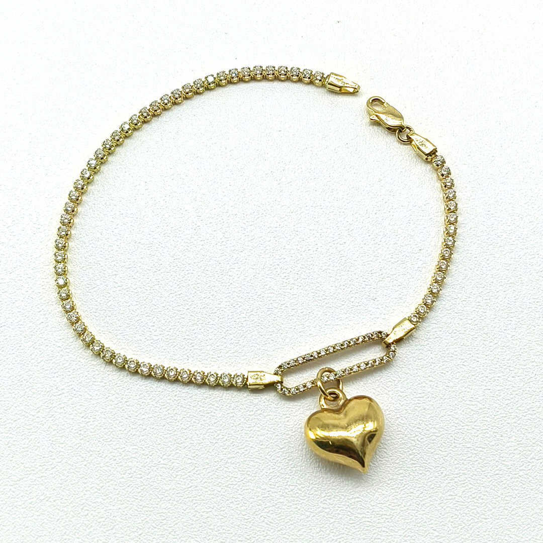 Pulso tipo tenis en oro amarillo de 10 Kilates, montado con circonias importadas de alta calidad.