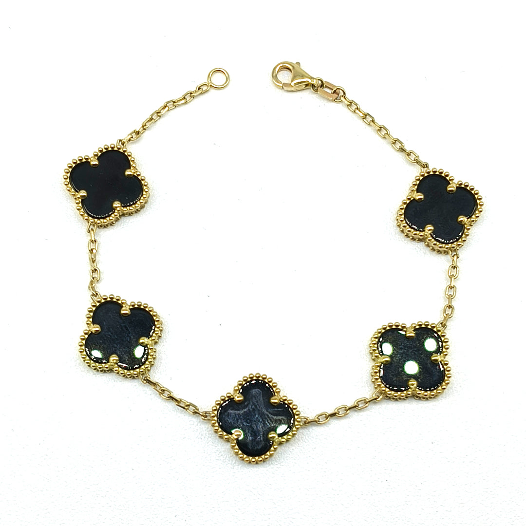 Pulso en oro amarillo con flores en color negro de 10 Kilates