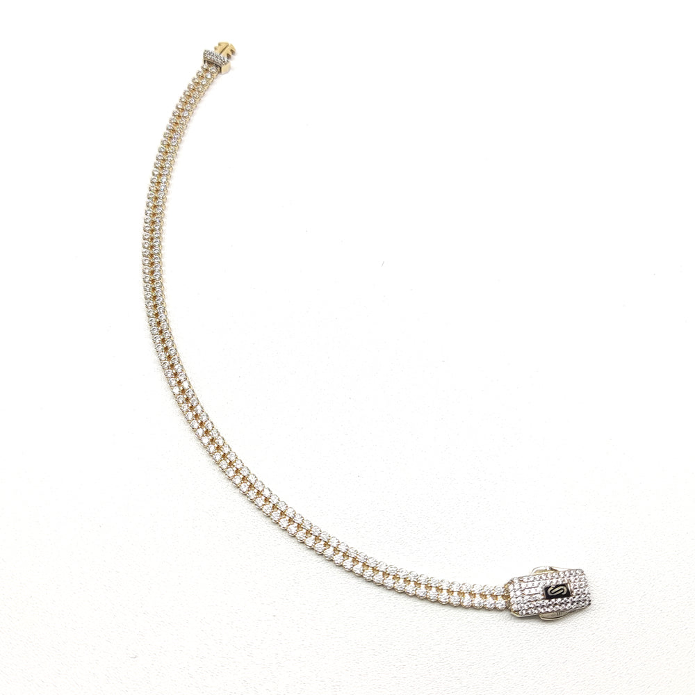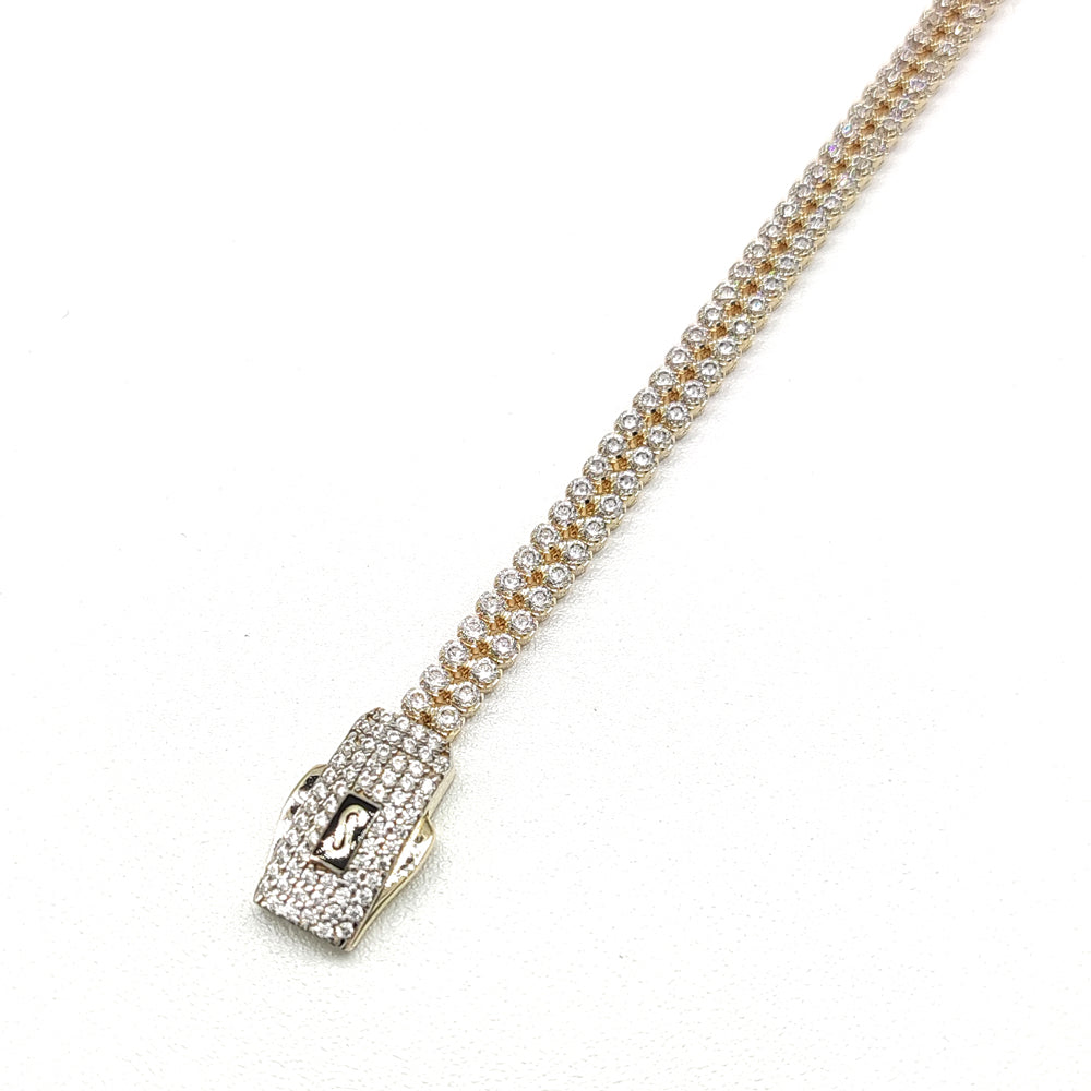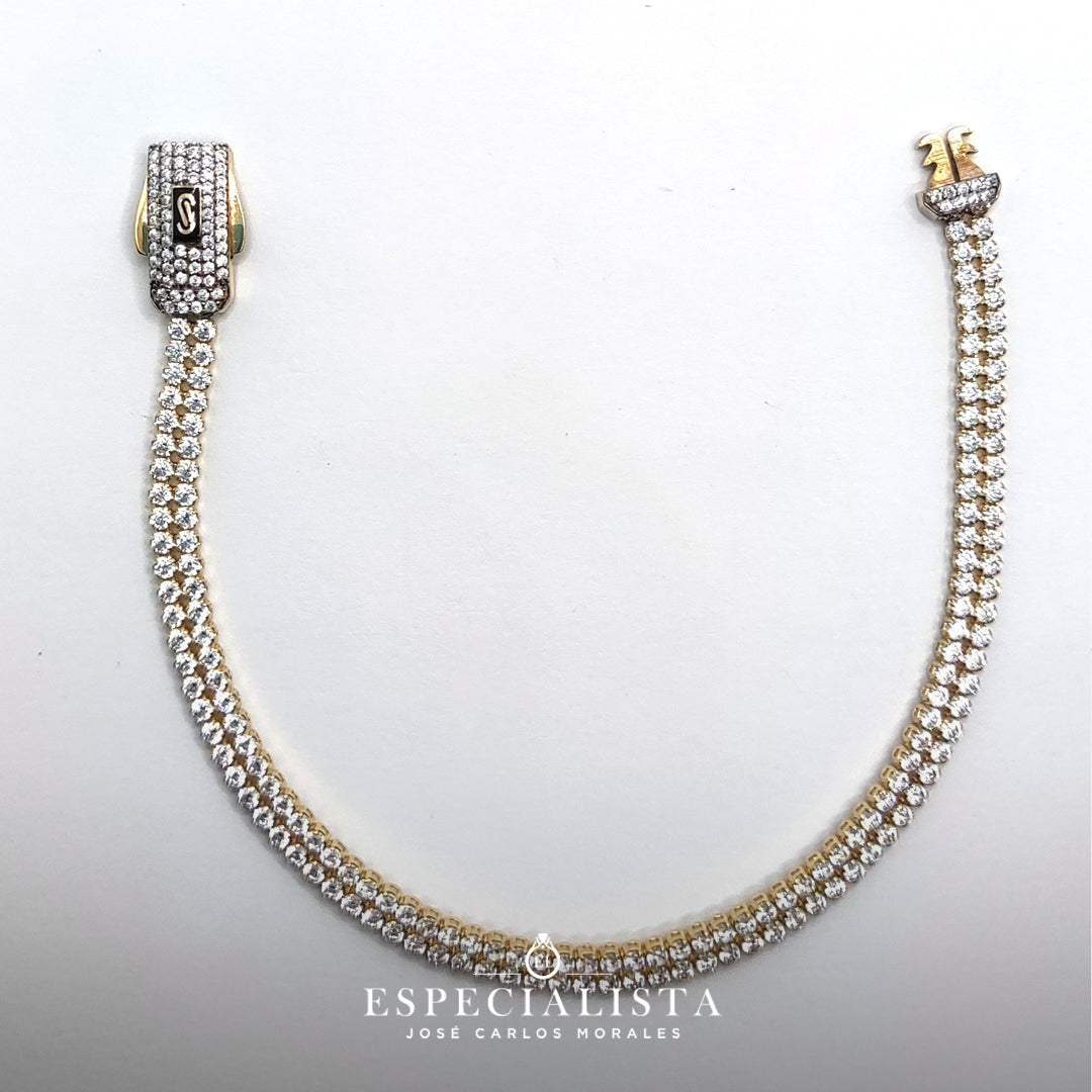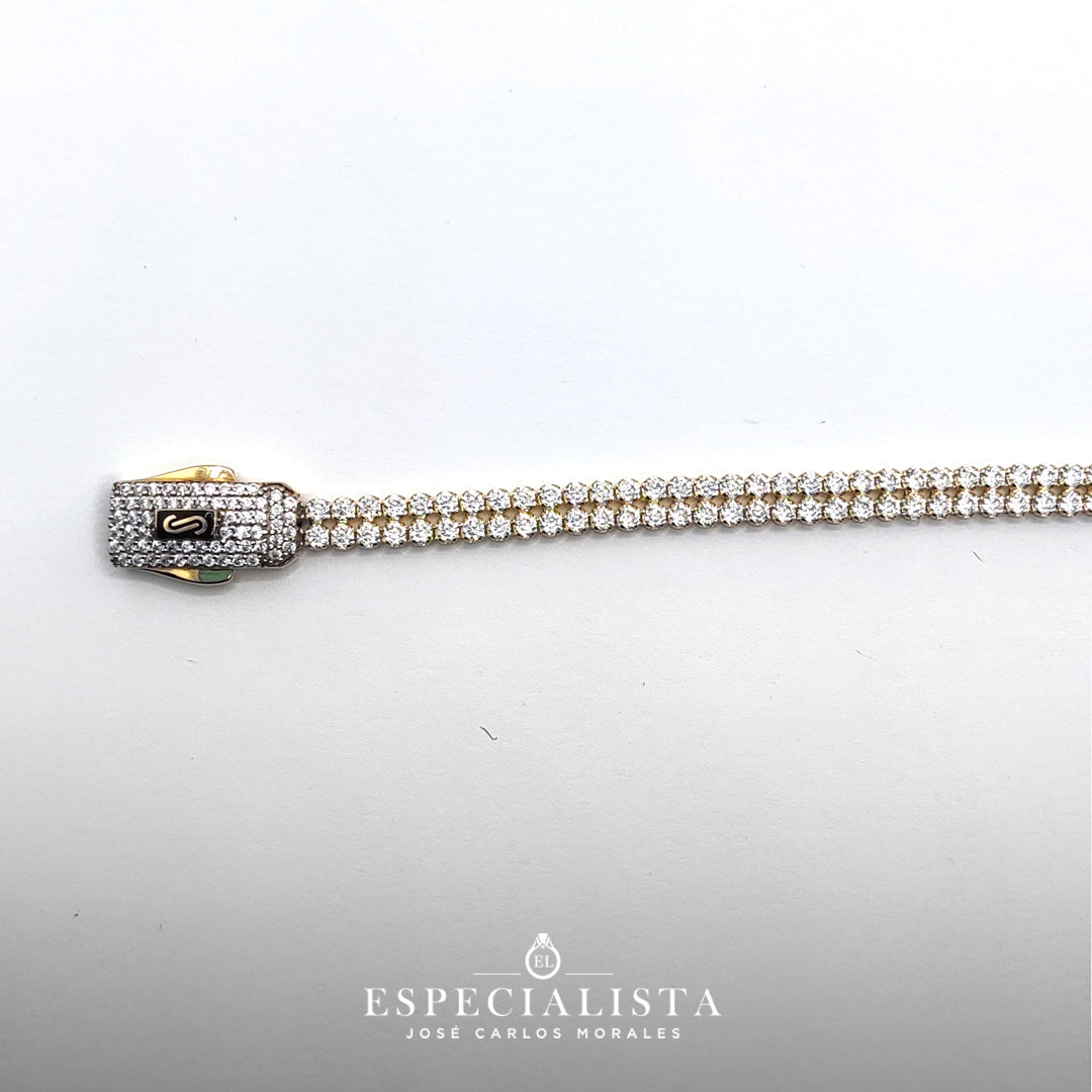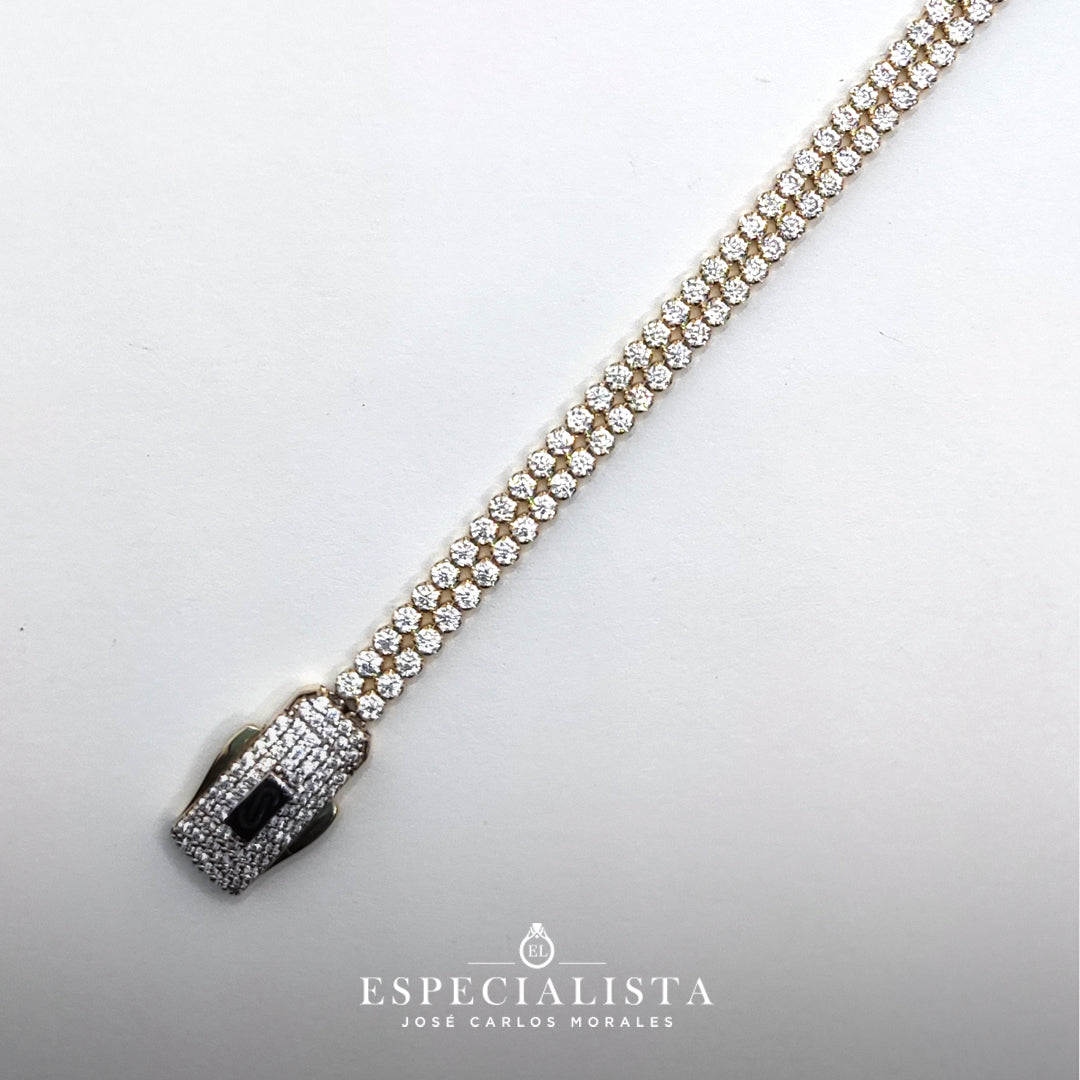 Pulso tipo Tenis en oro amarillo de 10 Kilates con circonia de la marca Monaco.