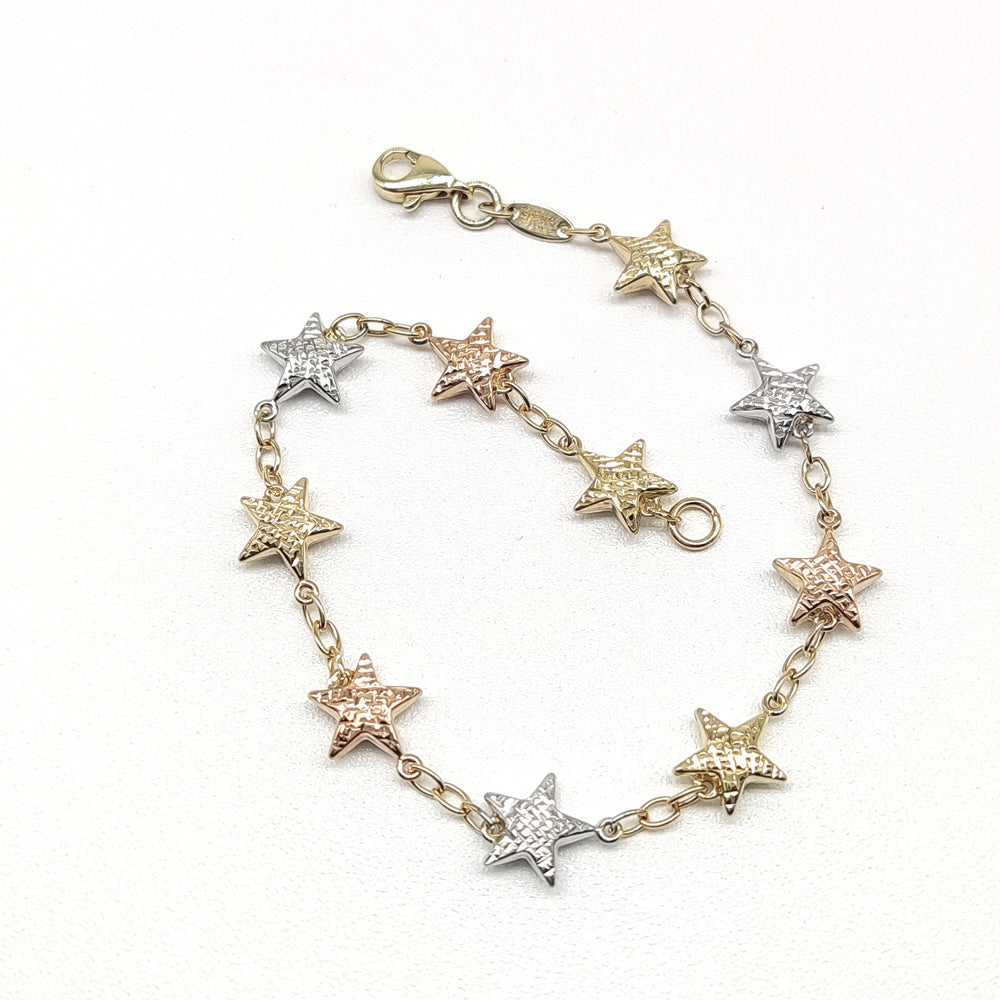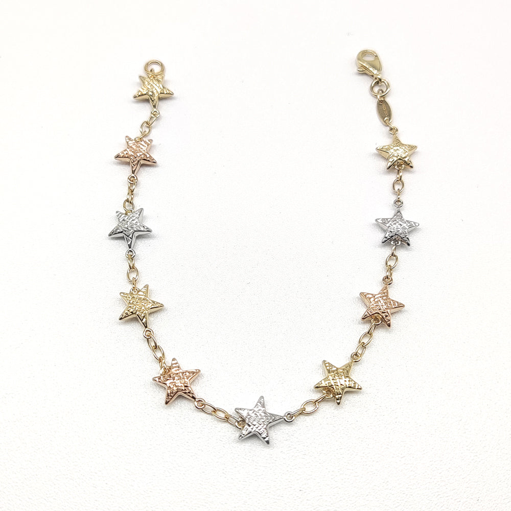 Pulso en oro amarillo de 10 kilates, con estrellas en oro florentino
