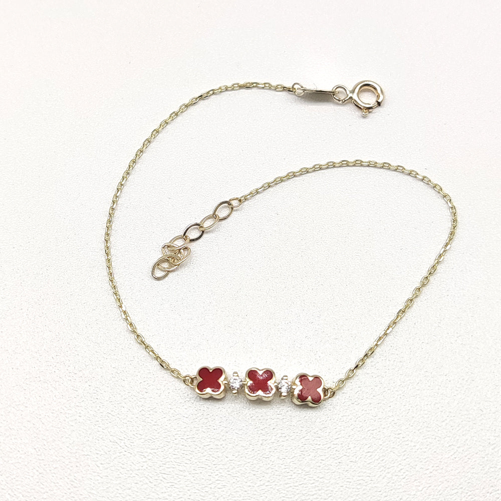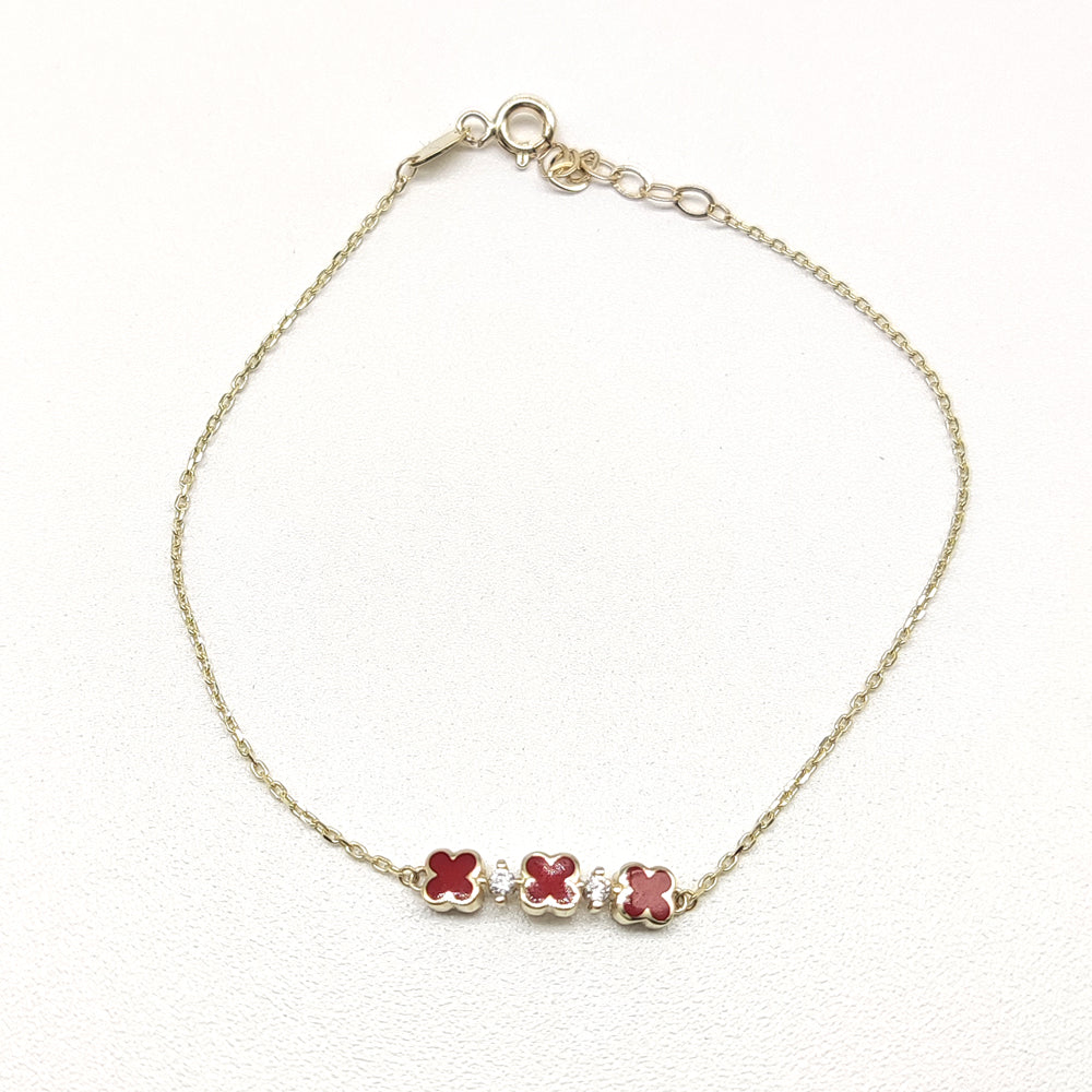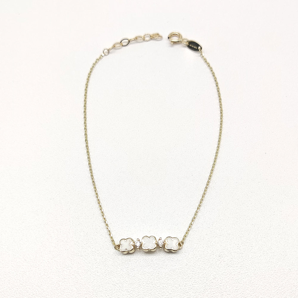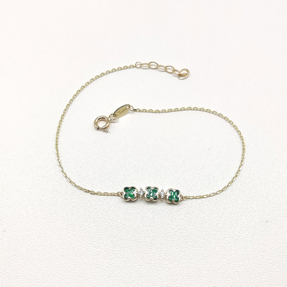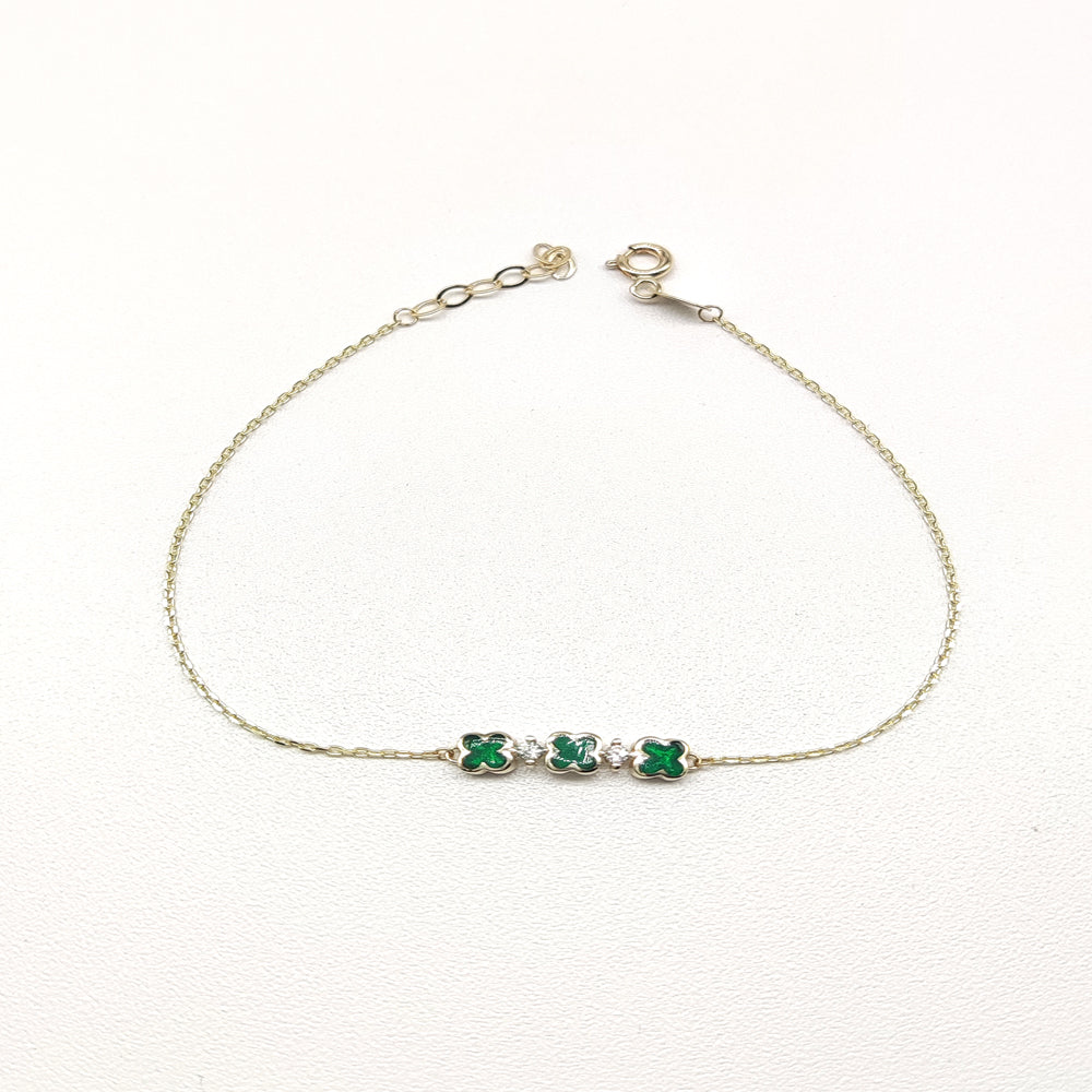 Pulso en oro amarillo de 10 kilates con dijes de trébol de cuatro hojas.