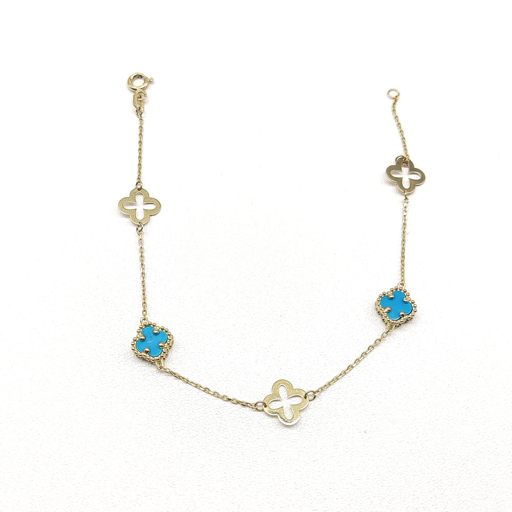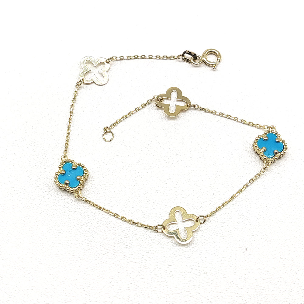 Pulso en oro amarillo de 10 kilates estilo Van cleef en color azul turquesa