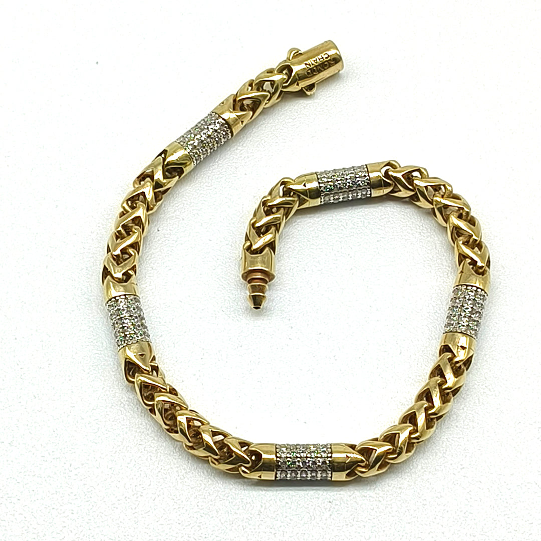 Pulsera Monaco estilo "Rondo" en oro amarillo con eslabón tubular y circonias