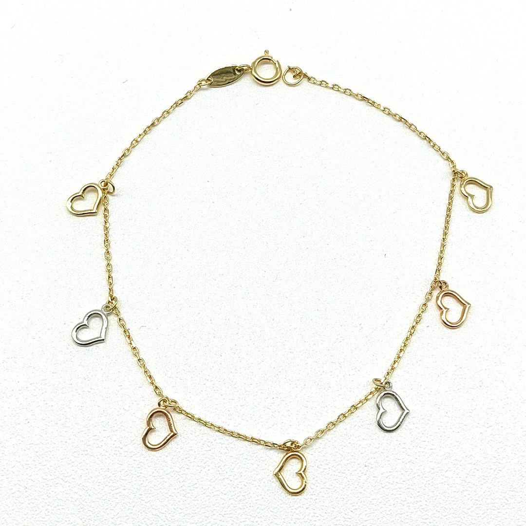 Pulso en oro amarillo de 14 Kilates con corazones florentino