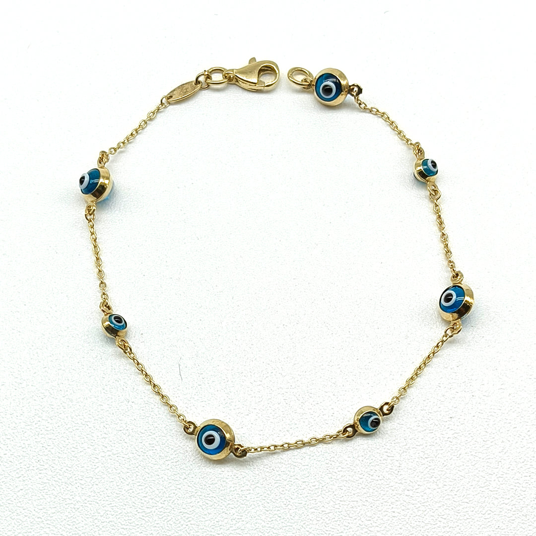 Pulso con ojos azules en oro amarillo 14 Kilates.