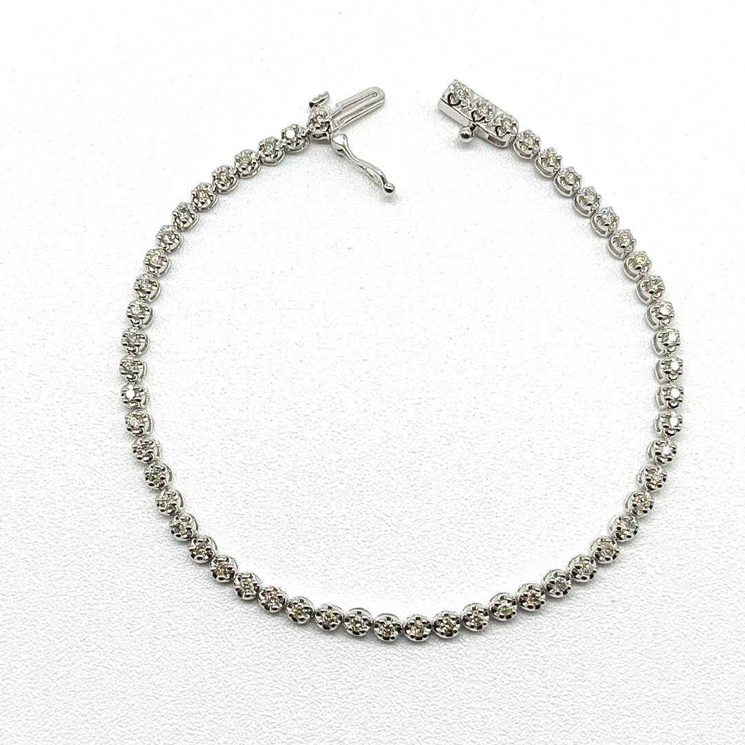 Pulso tipo tenis con Diamantes, fabricado en oro blanco de 14 Kilates.