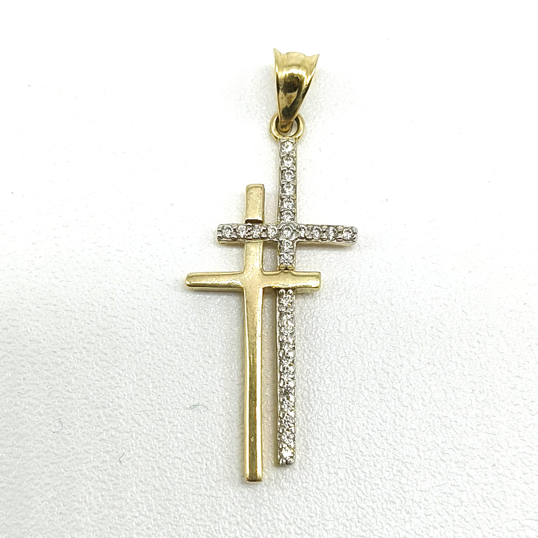 Cruz en Oro Amarillo de 10 Kilates con circonias importadas de alta calidad.