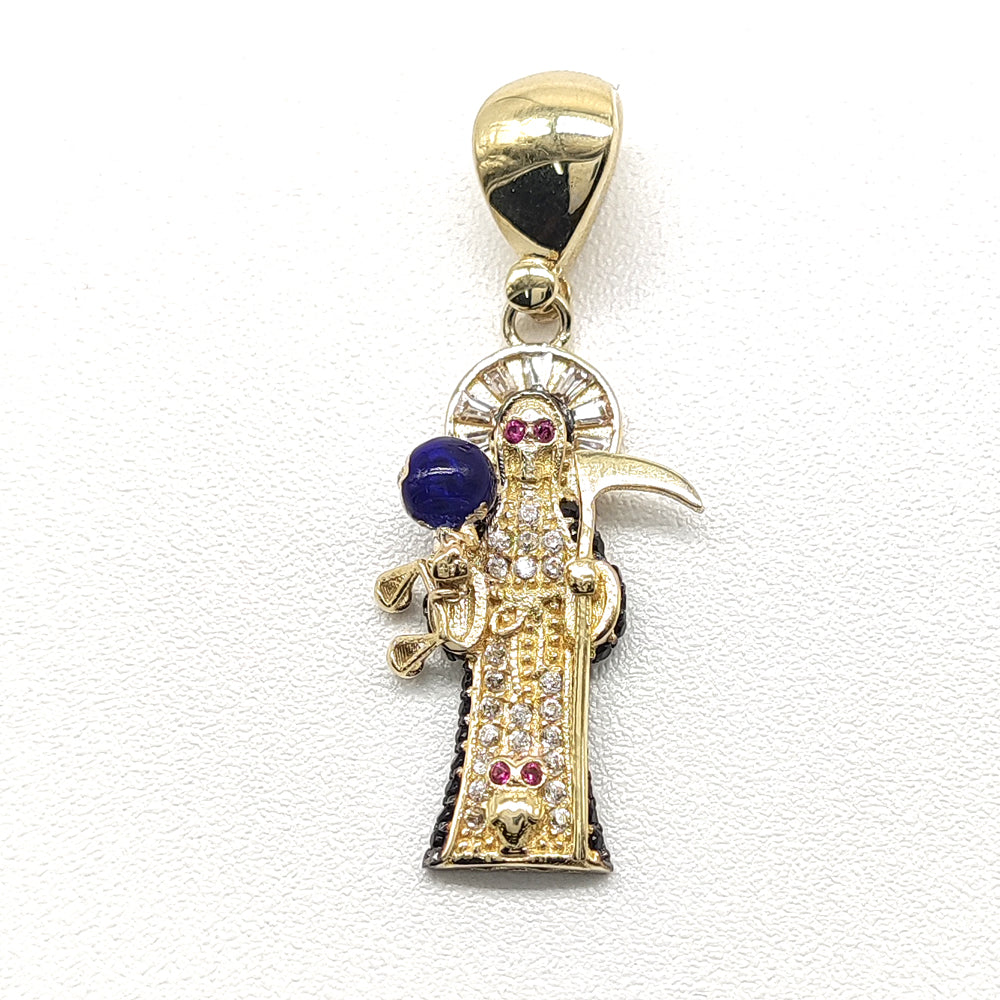Dije de la santa muerte en oro amarillo de 10 Kilates con circonias