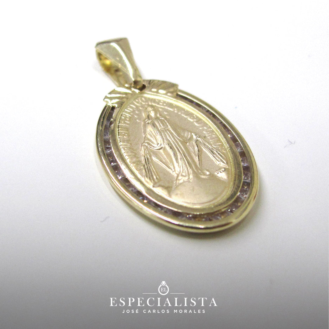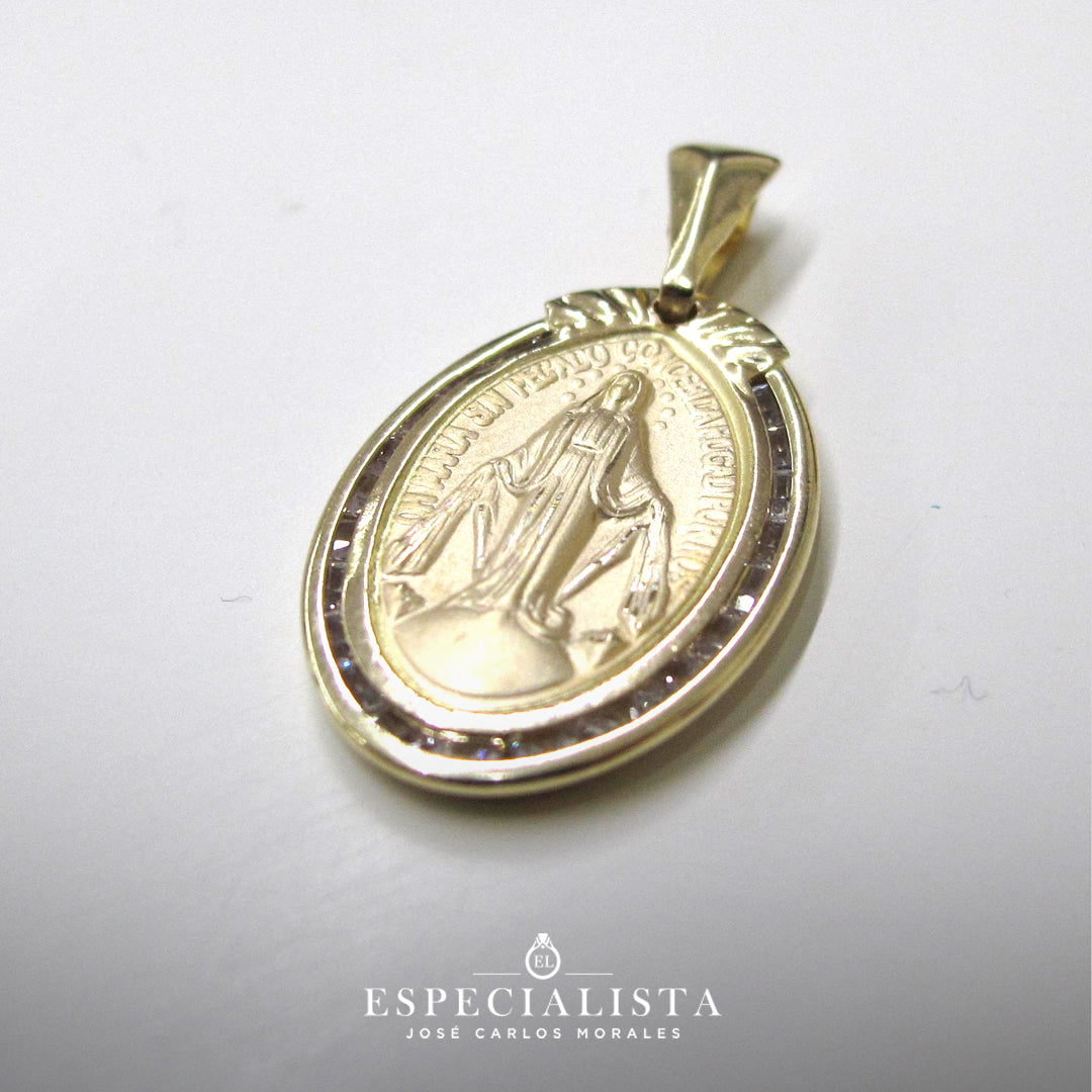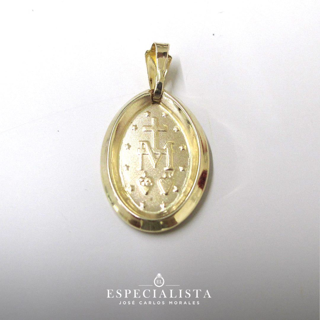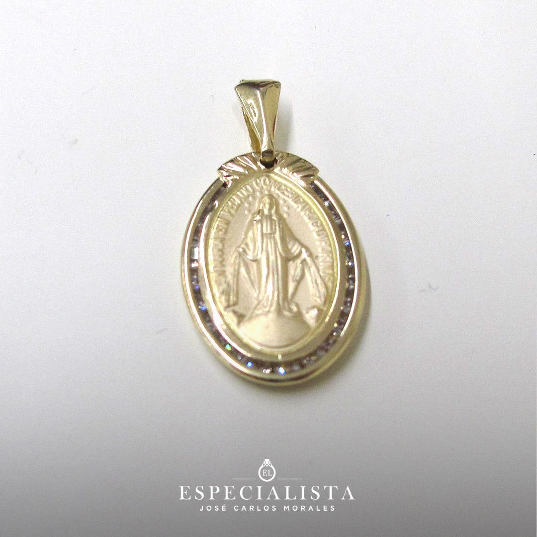 Medalla en oro amarillo de 10/14 Kilates con imagen de la Virgen Milagrosa con doble vista.