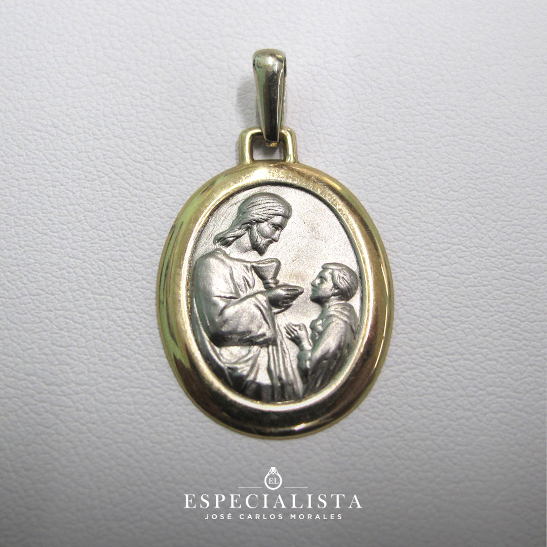 Medalla de primera comunión en oro amarillo con blanco de 14 Kilates.