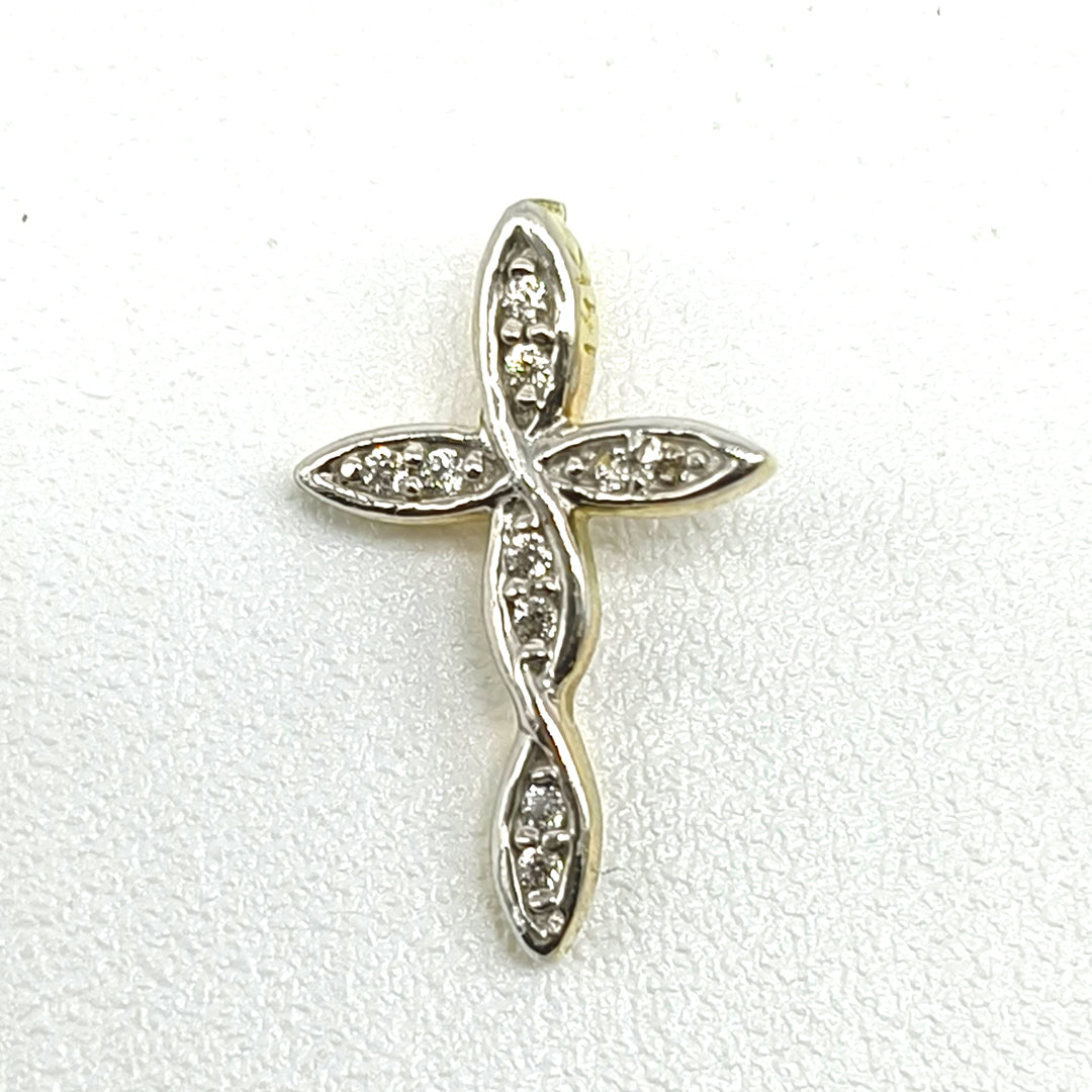 Dije con forma de cruz y circonias.